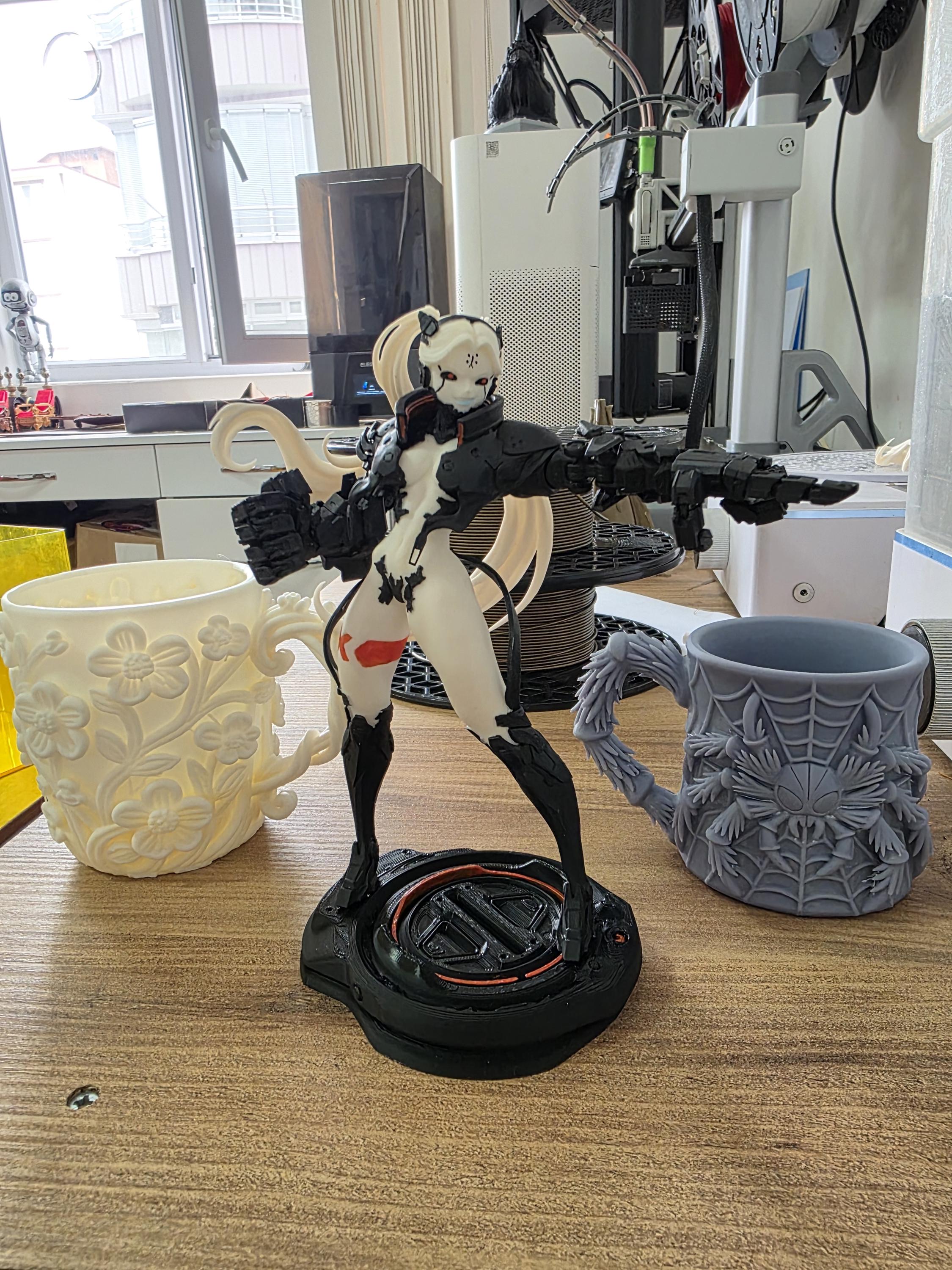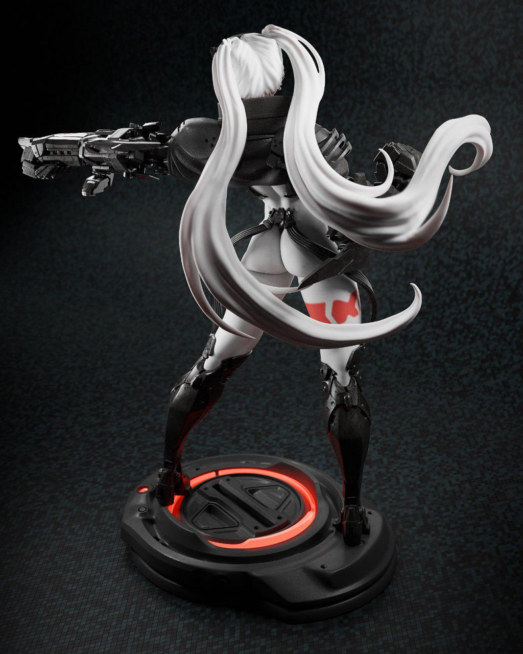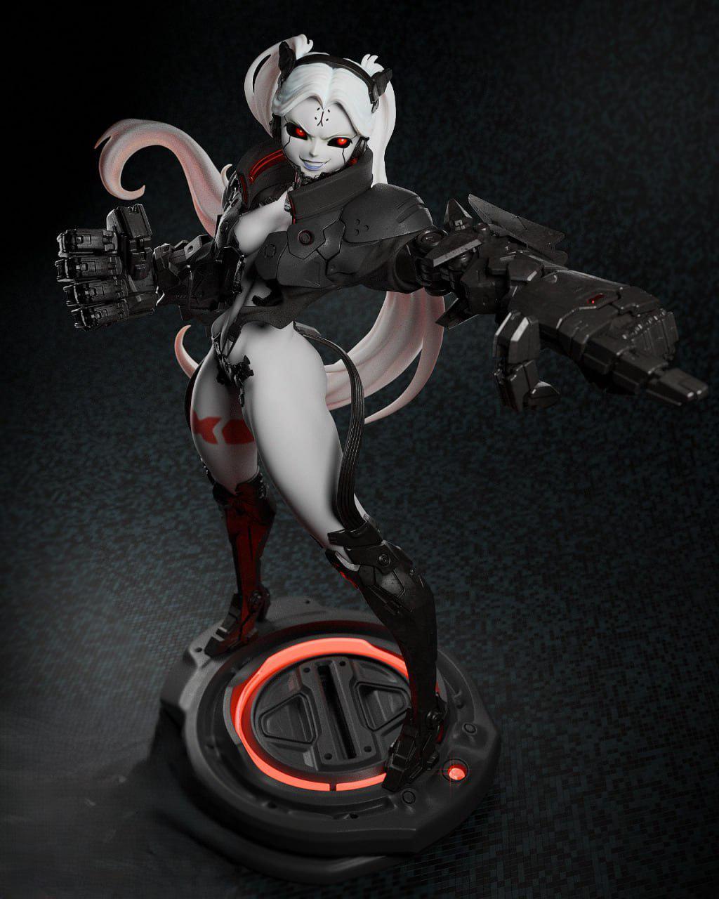 Bring bold cyberpunk energy to your desk. This 3D printed anime-style cyberpunk girl statue features an iconic mecha-arm / heavy weapon pose and a striking silhouette that looks incredible in gamer rooms, studios, and collector shelves.