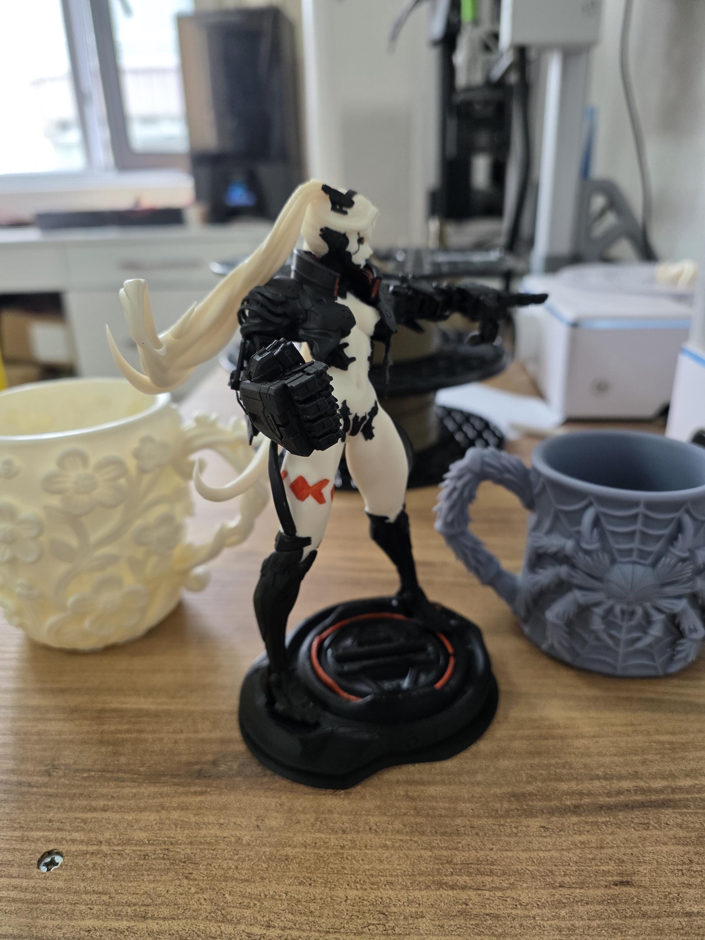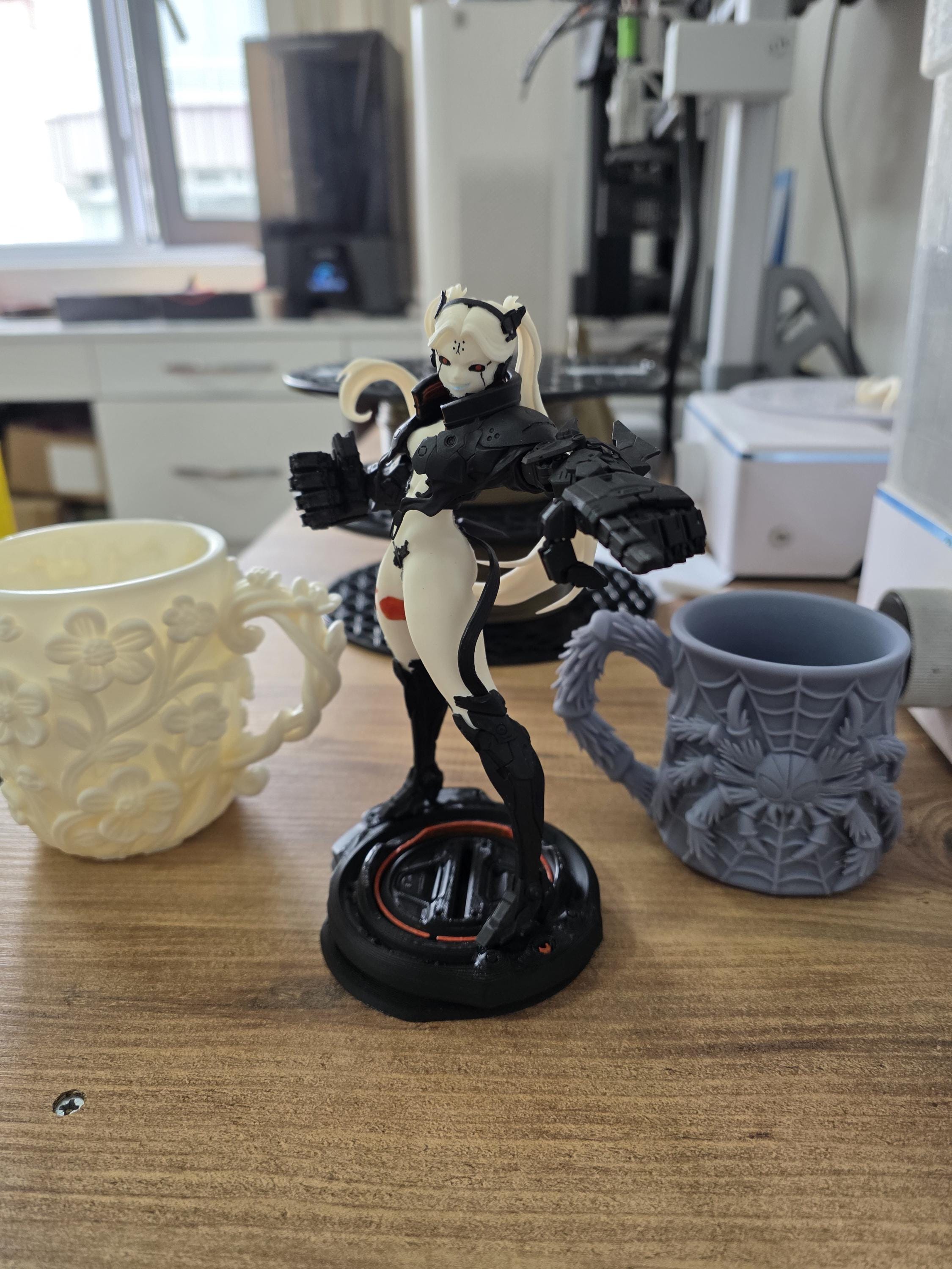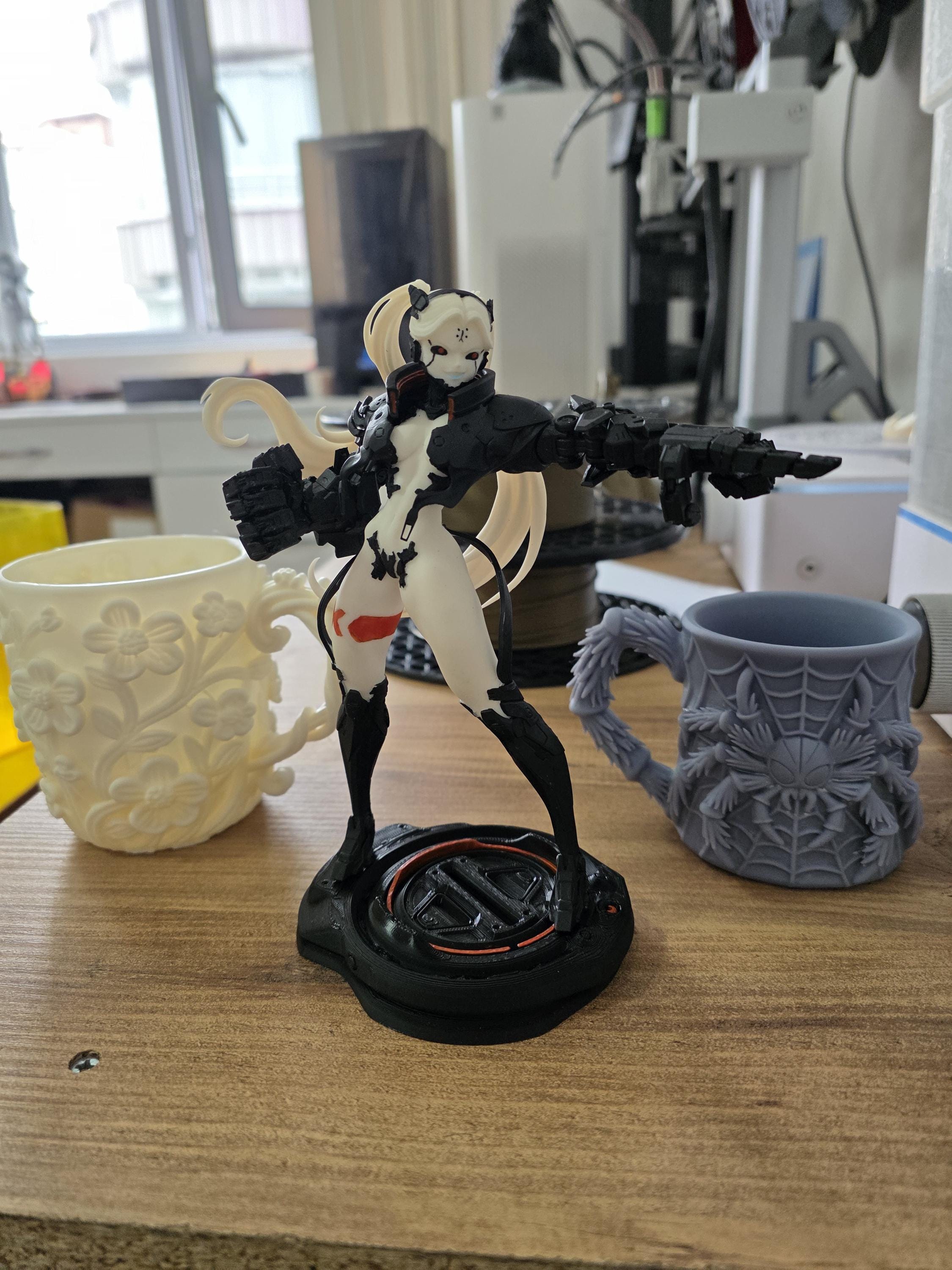 Bring bold cyberpunk energy to your desk. This 3D printed anime-style cyberpunk girl statue features an iconic mecha-arm / heavy weapon pose and a striking silhouette that looks incredible in gamer rooms, studios, and collector shelves.