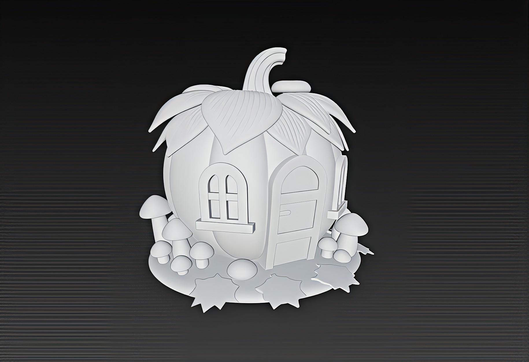 Pumpkin House 3D Model – Detailed STL File for 3D Printers (Digital Download)