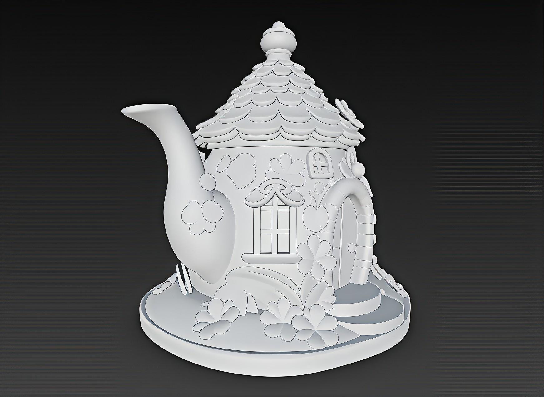 Teapot House 3D Model STL File: Detailed 3D Printing Design (Digital Download)