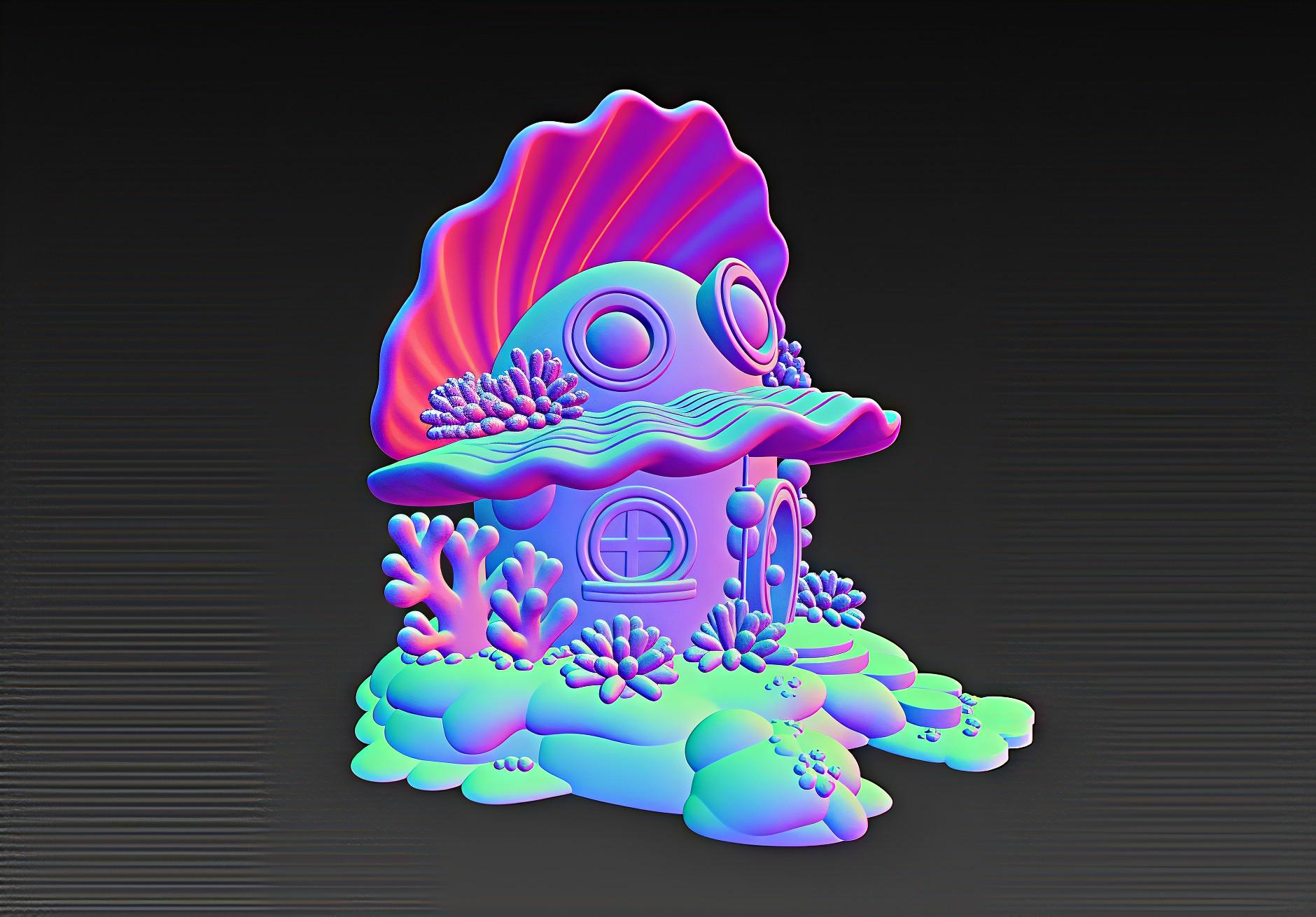 Seashell House 3D Model – Detailed STL File for 3D Printing (Digital Download)