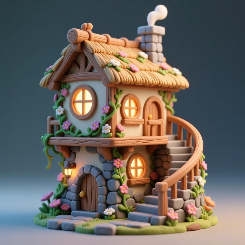 Two-Story House 3D Model – Detailed STL File for 3D Printing
