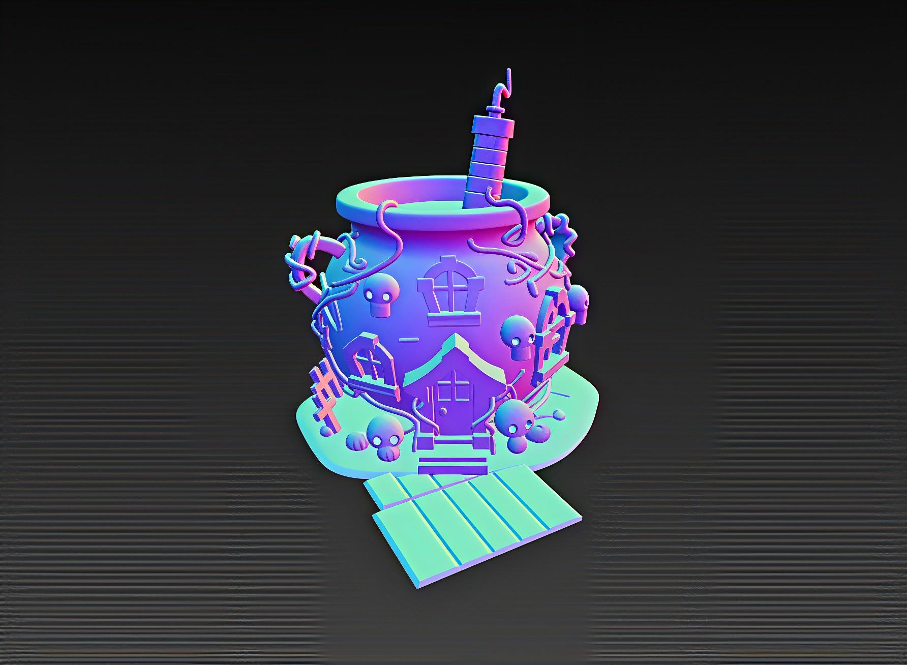 Potion House 3D Model – Fantasy Cauldron Home STL File (Digital Download)