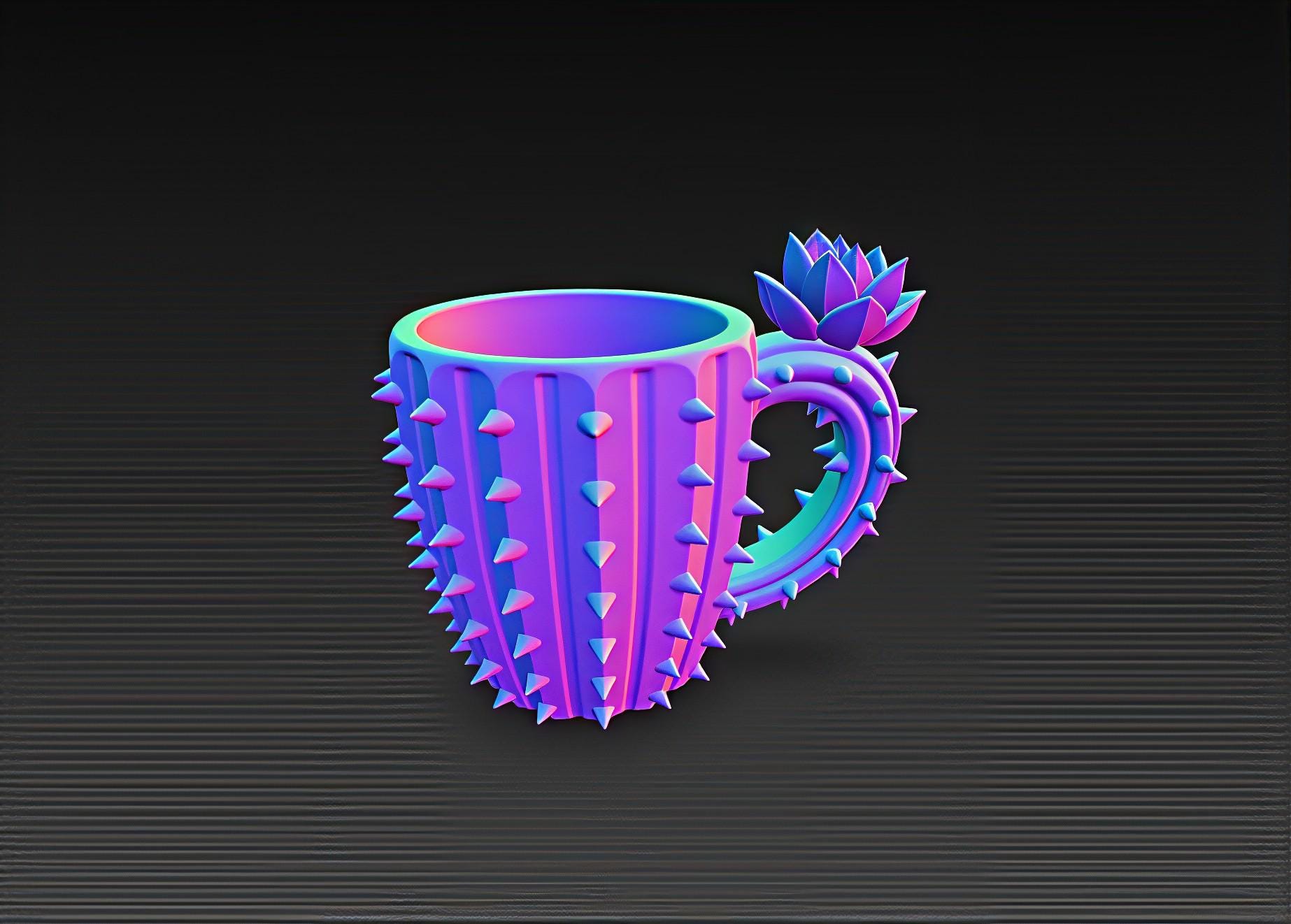 3D Model cactus Mug: High-Detail STL File for 3D Printing (Digital Download)