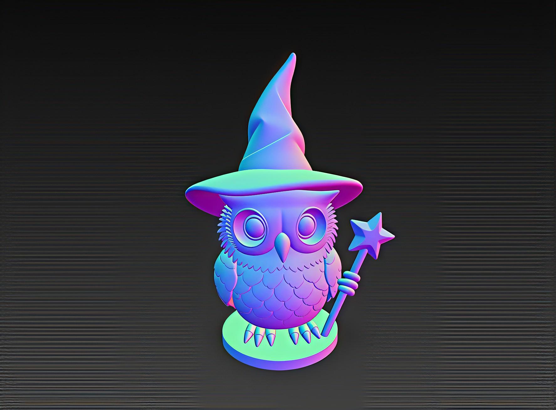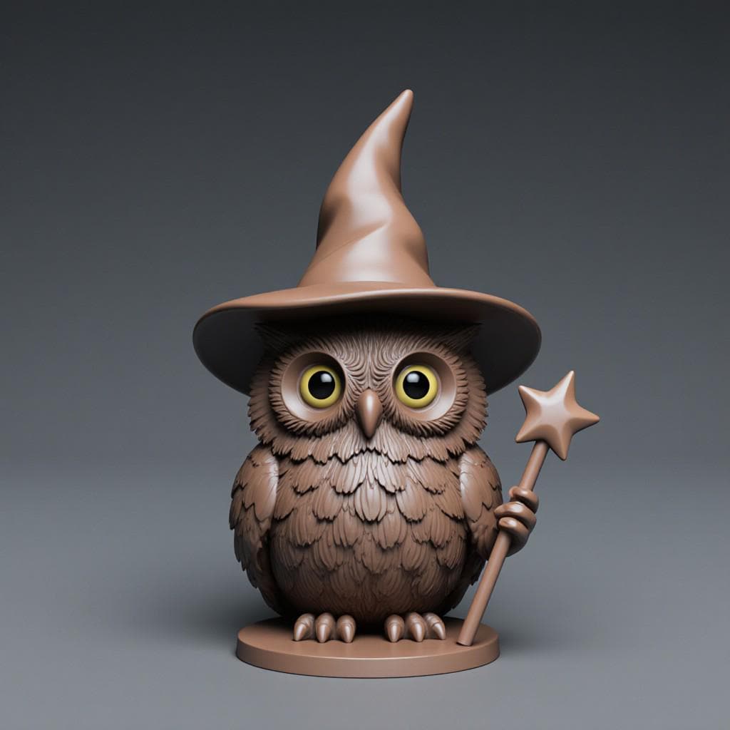 Wizard Owl 3D Model STL File: Fantasy Figure for 3D Printing