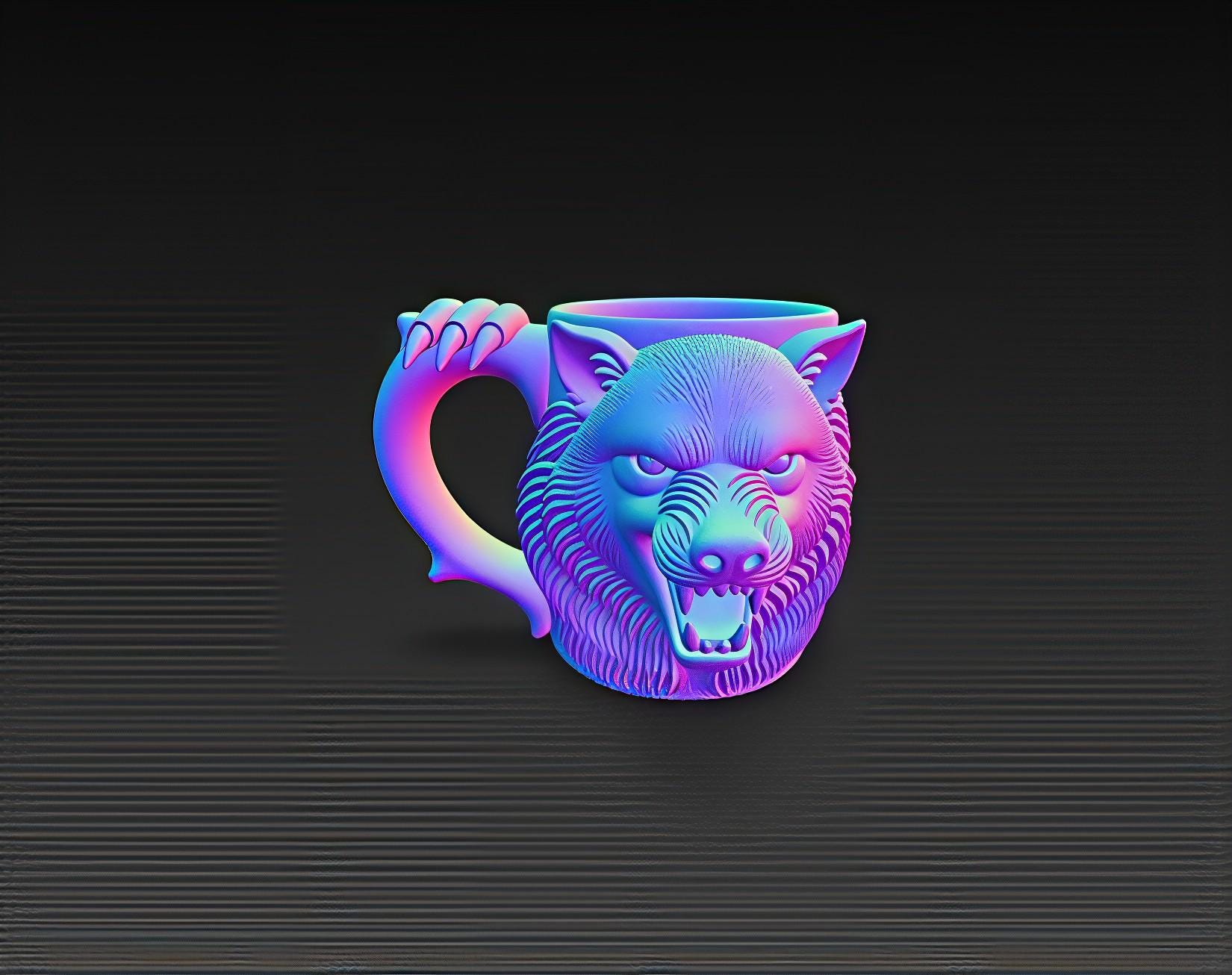 Wolf Mug 3D Model STL File: Digital Download for 3D Printing