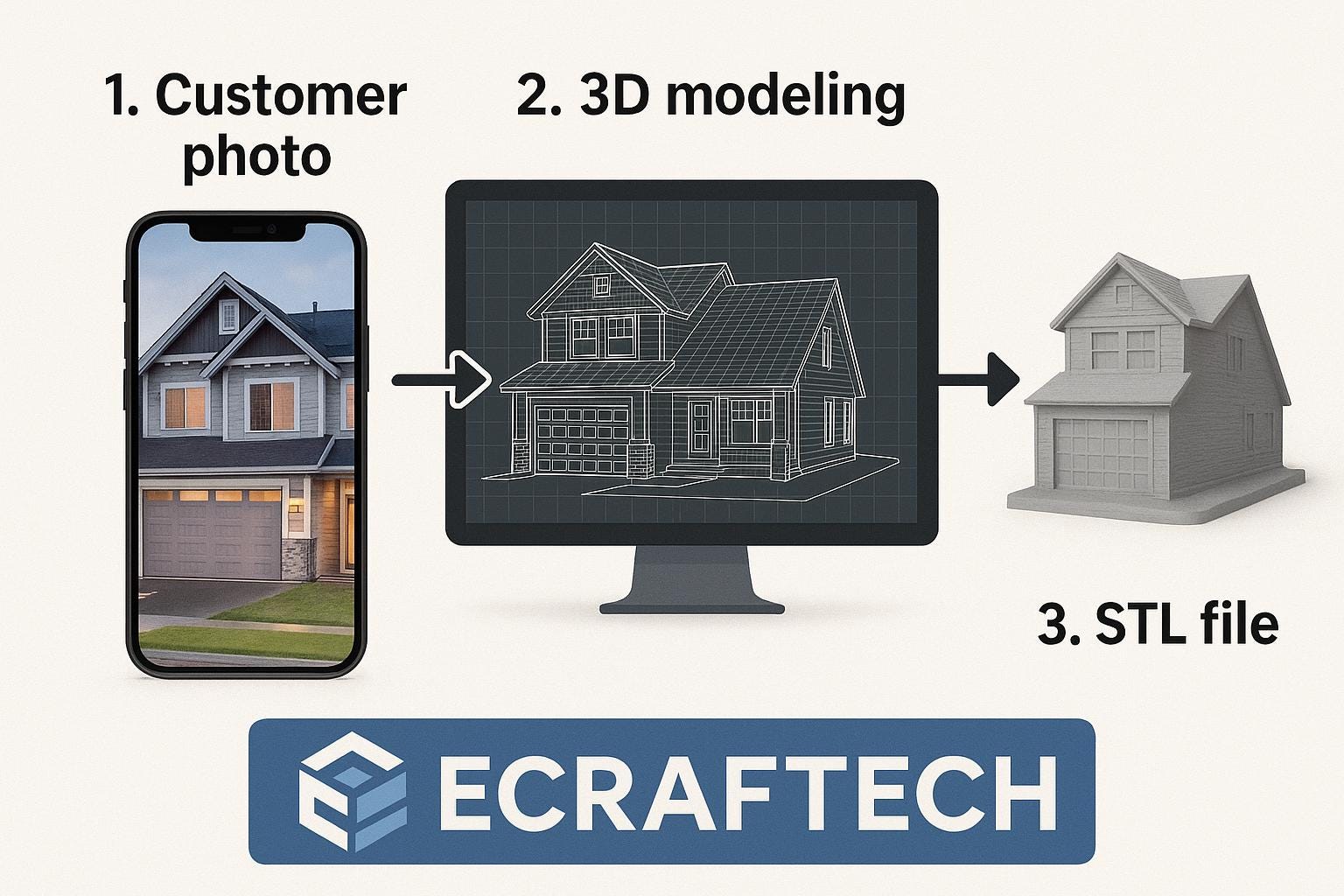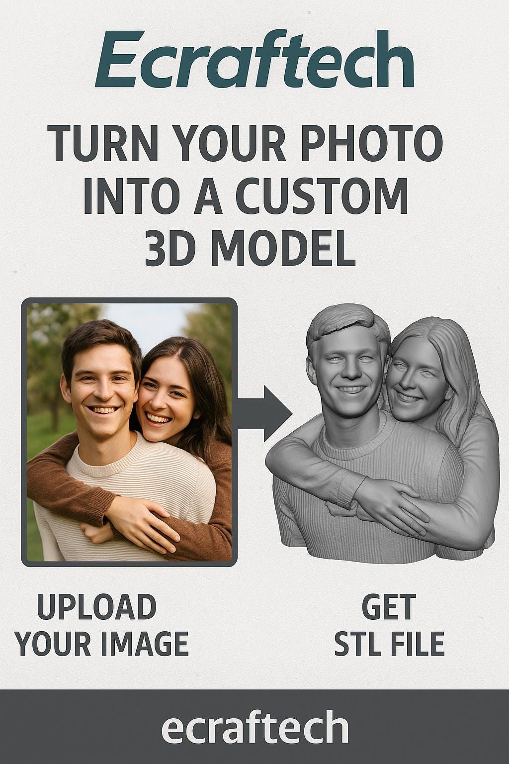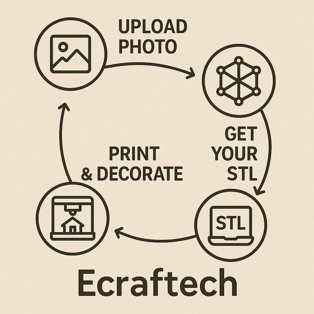 I convert your photo into a print-ready STL file. For clear subjects—pets, house facades, collectibles, robots/figures—I deliver clean, support-friendly models. Brand: Ecraftech.