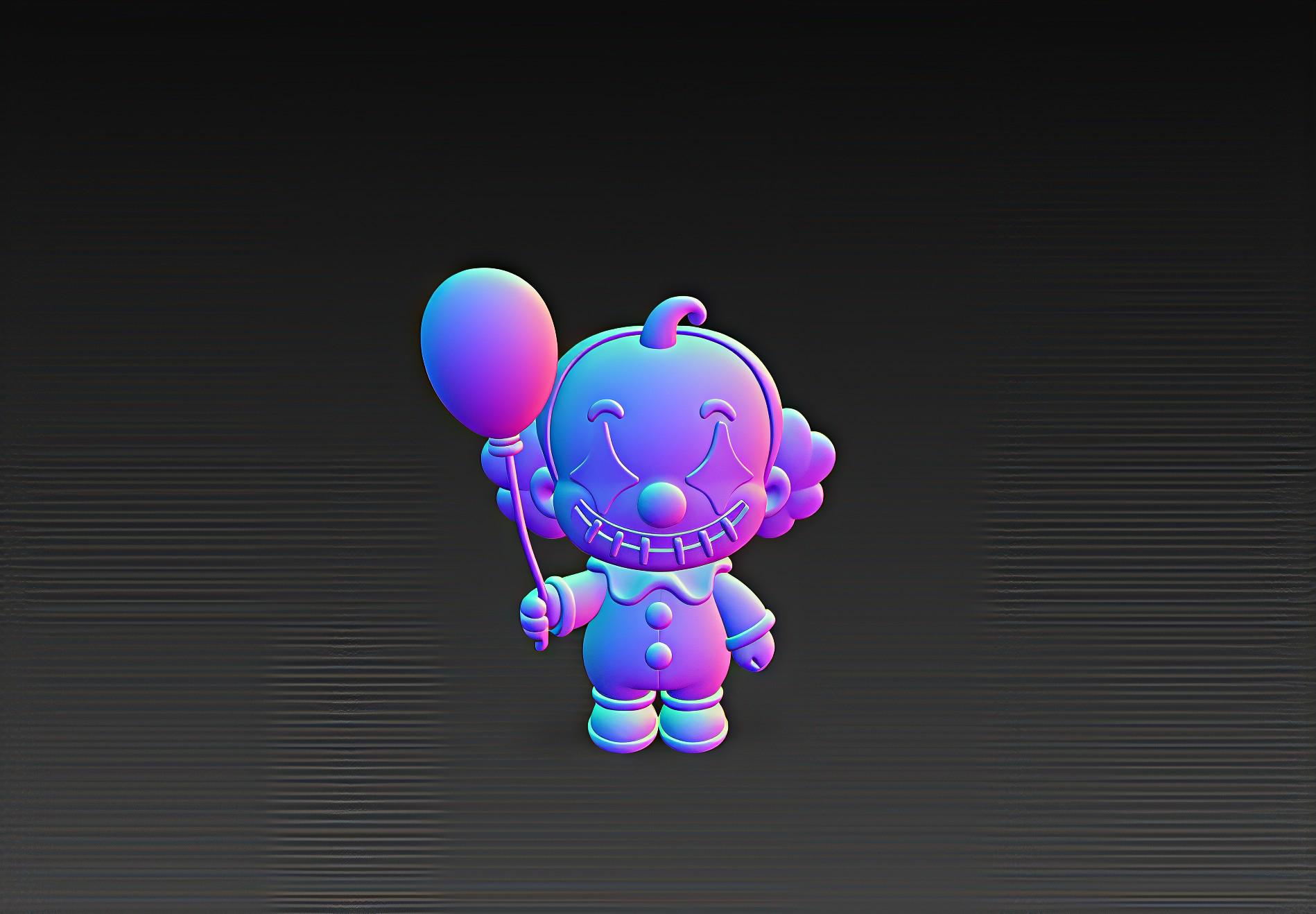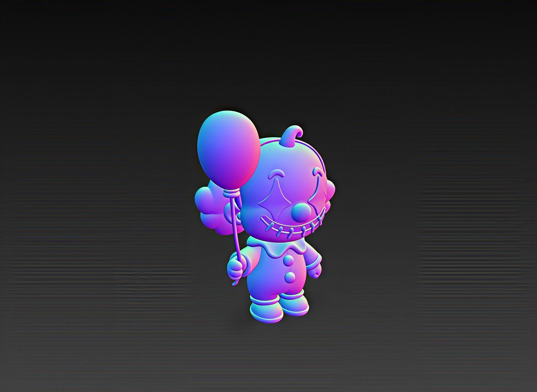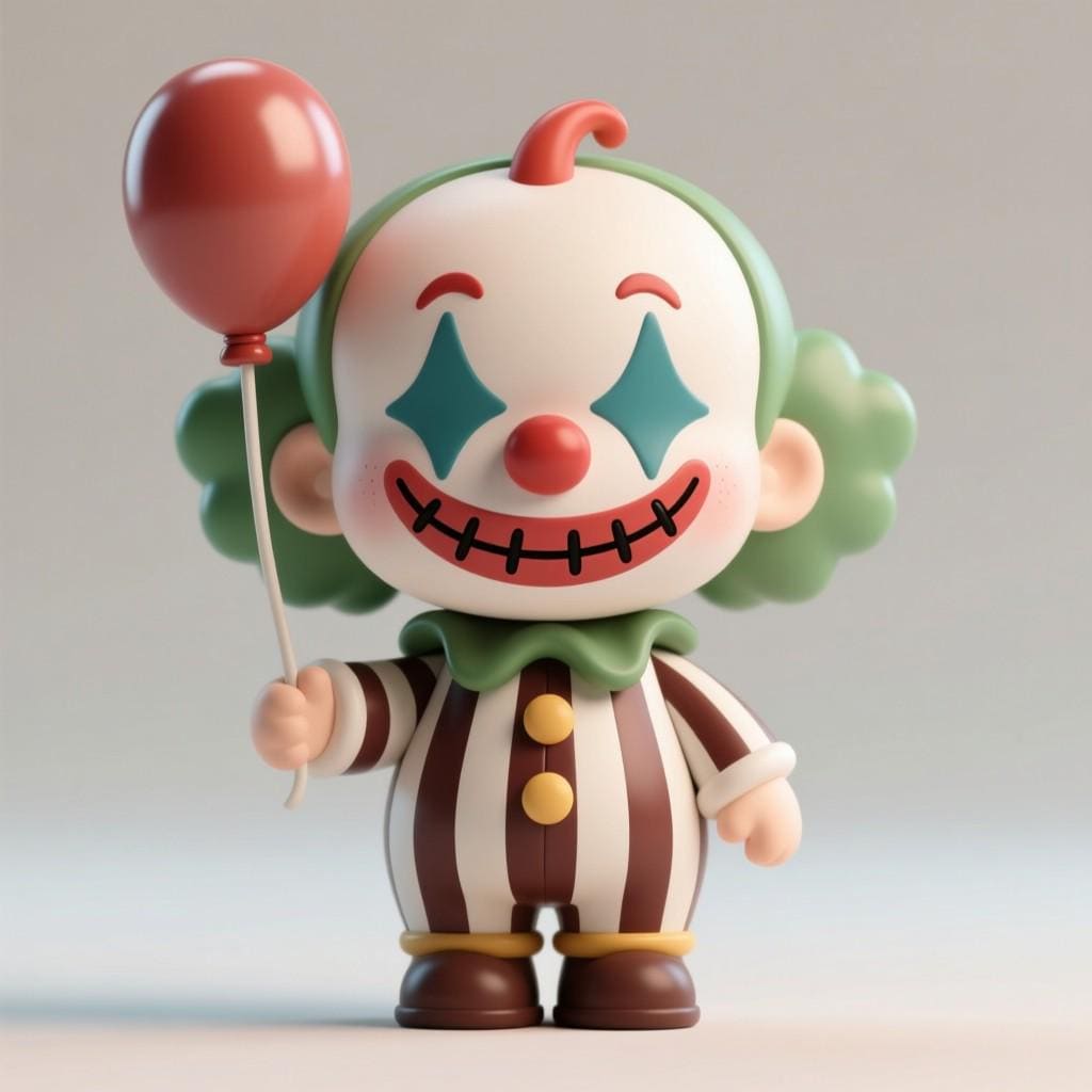 Cute yet spooky chibi clown holding a balloon, perfect for Halloween or circus-themed collections. Digital STL file for 3D printing.