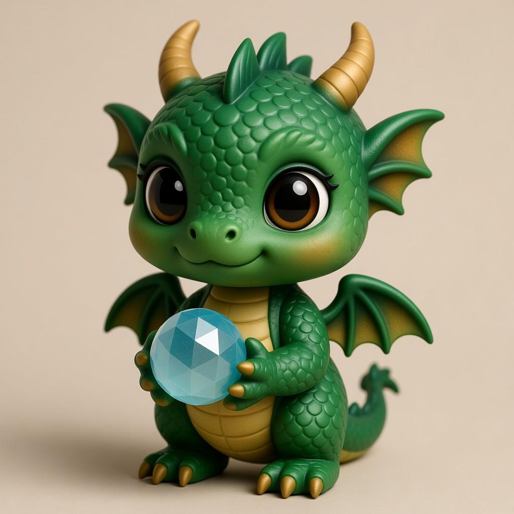 Adorable chibi baby dragon holding a crystal orb, perfect for fantasy collections and decor. Digital STL file for 3D printing only.