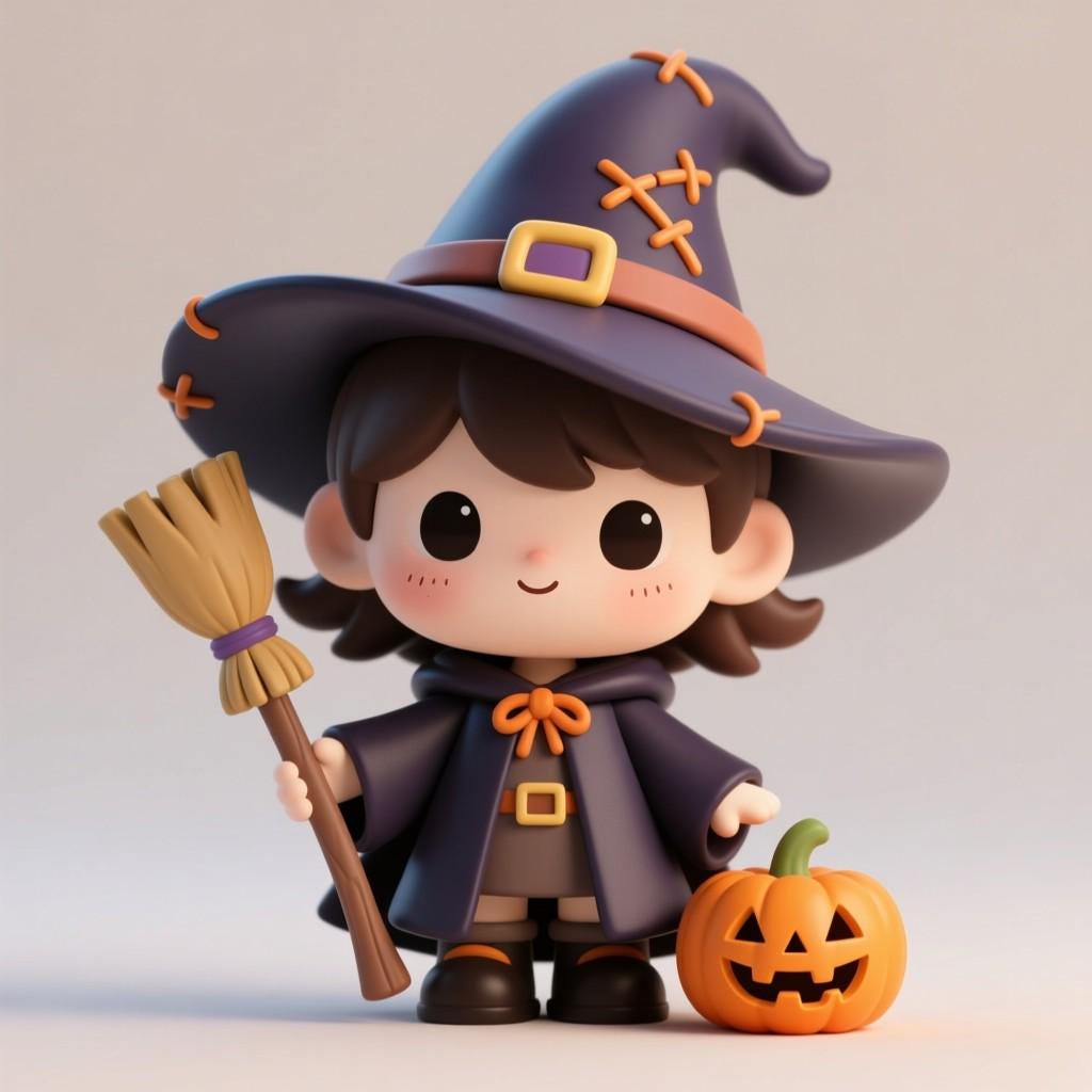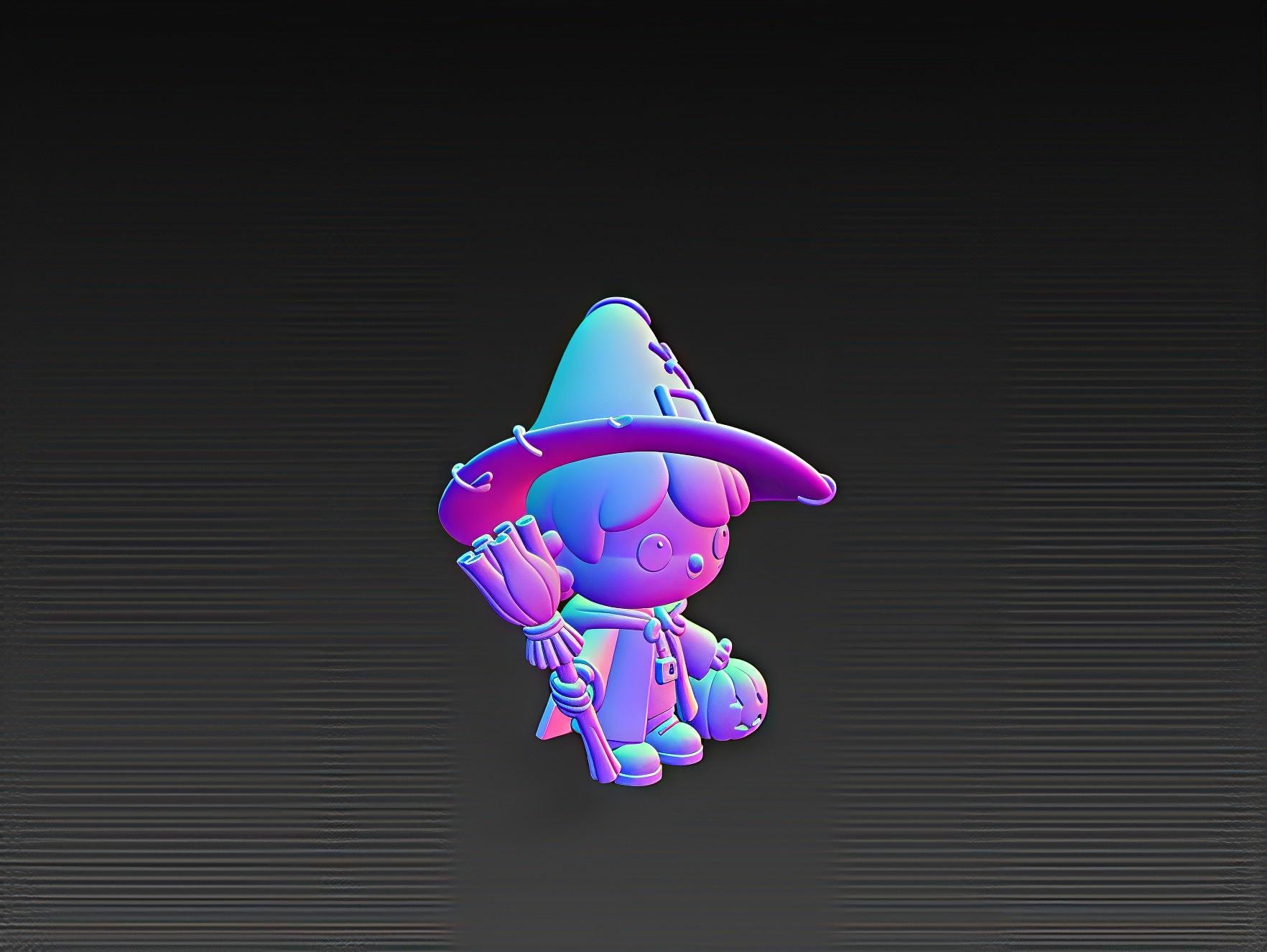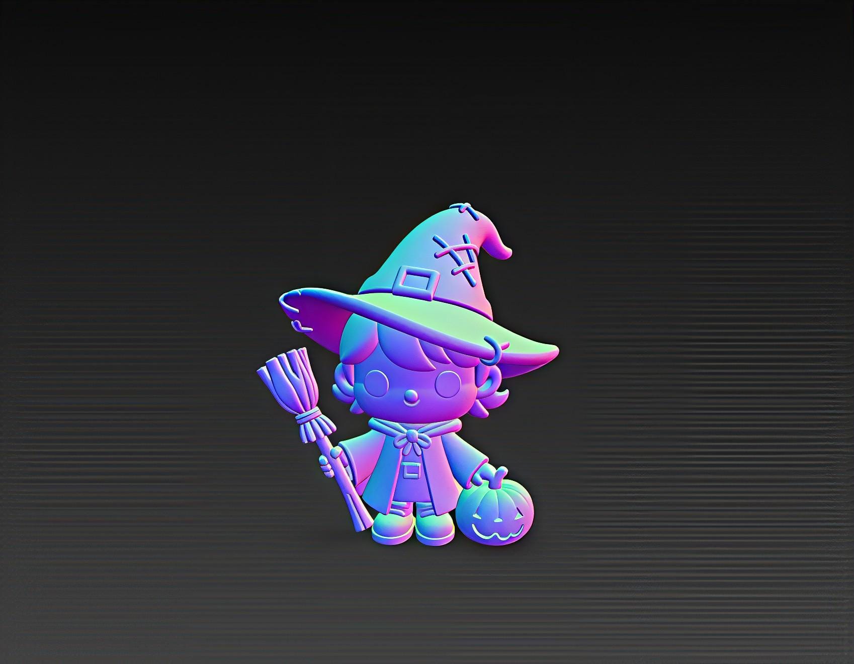 Adorable chibi witch holding a broom with a pumpkin by her side, perfect for Halloween decor and spooky collections. Digital STL file for 3D printing.