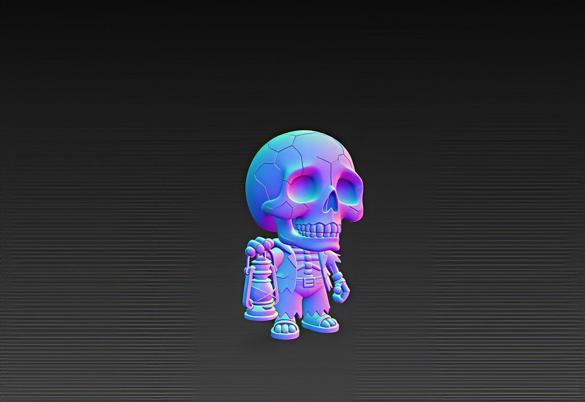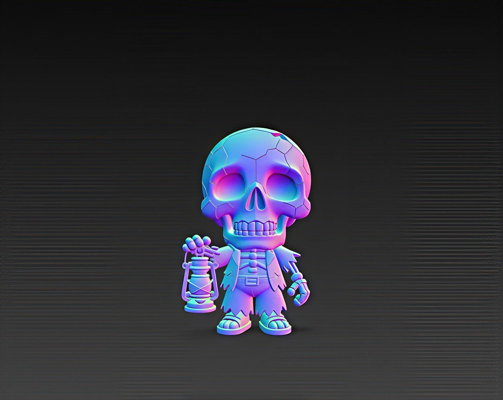Adorable chibi skeleton holding a lantern, featuring cracked skull details. Perfect for Halloween displays and spooky collections. Digital STL file.