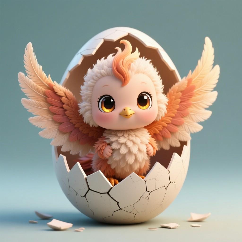 Adorable chibi phoenix hatching from an egg, with fiery wings and magical details. Perfect for fantasy lovers and collectors. Digital STL file for 3D printing.
