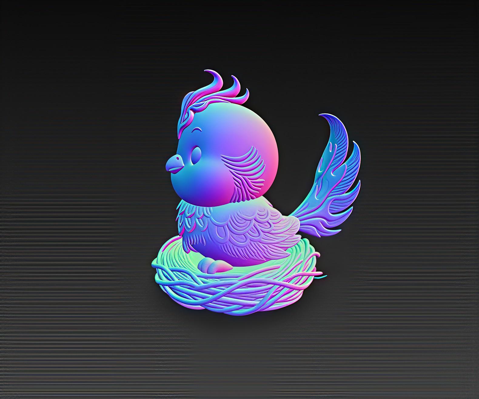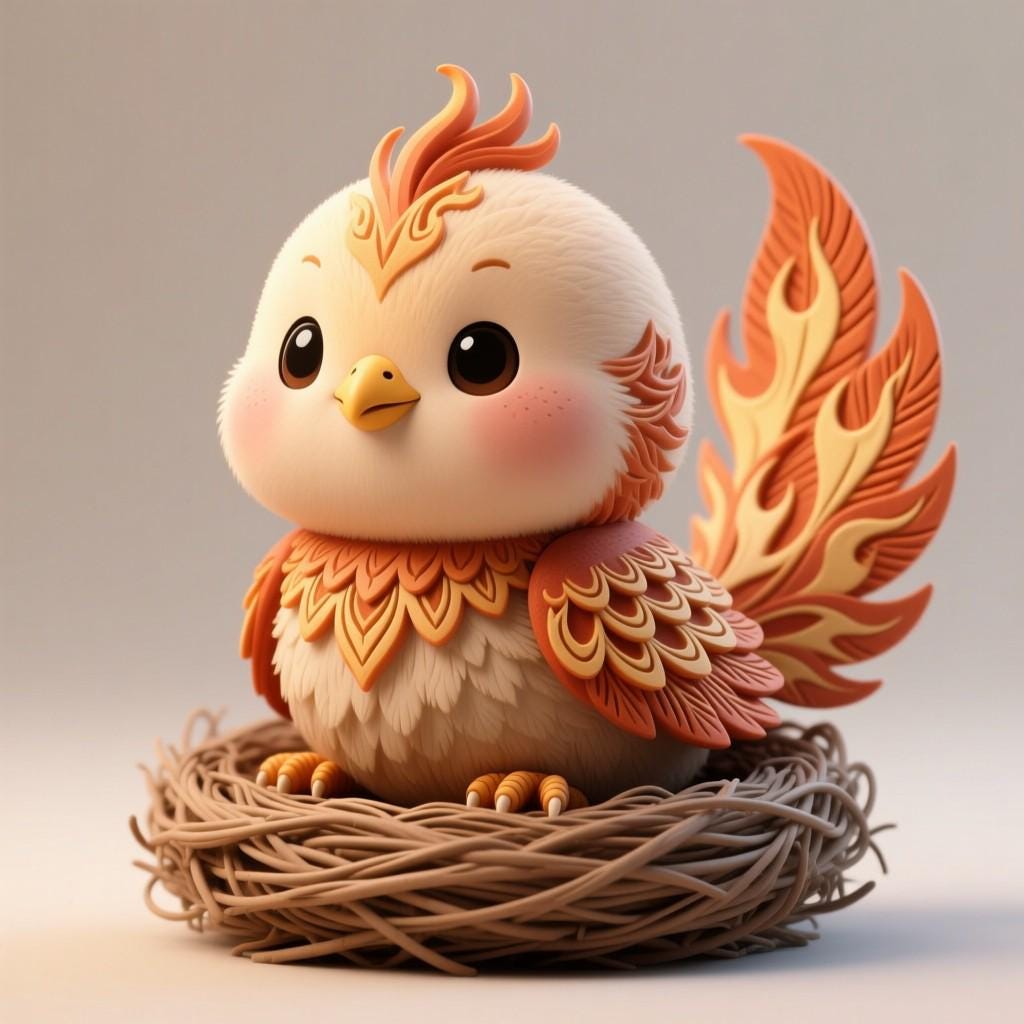 Adorable chibi phoenix with fiery tail sitting in a nest, perfect for fantasy lovers, magical decor and collectible displays. Digital STL file for 3D printing.