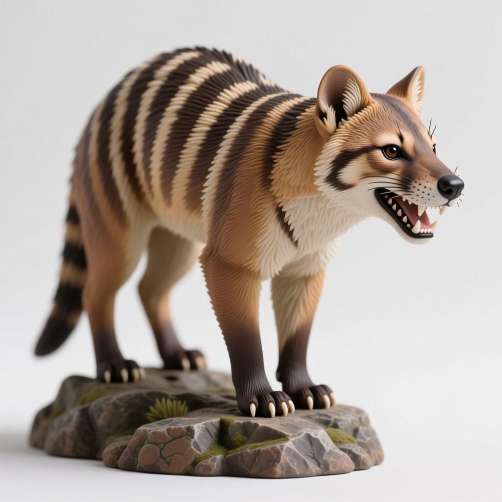 Highly detailed Thylacine (Tasmanian Tiger) standing on a rocky base. Perfect for extinct animal collectors, museum-style displays and unique decor. Digital STL file.