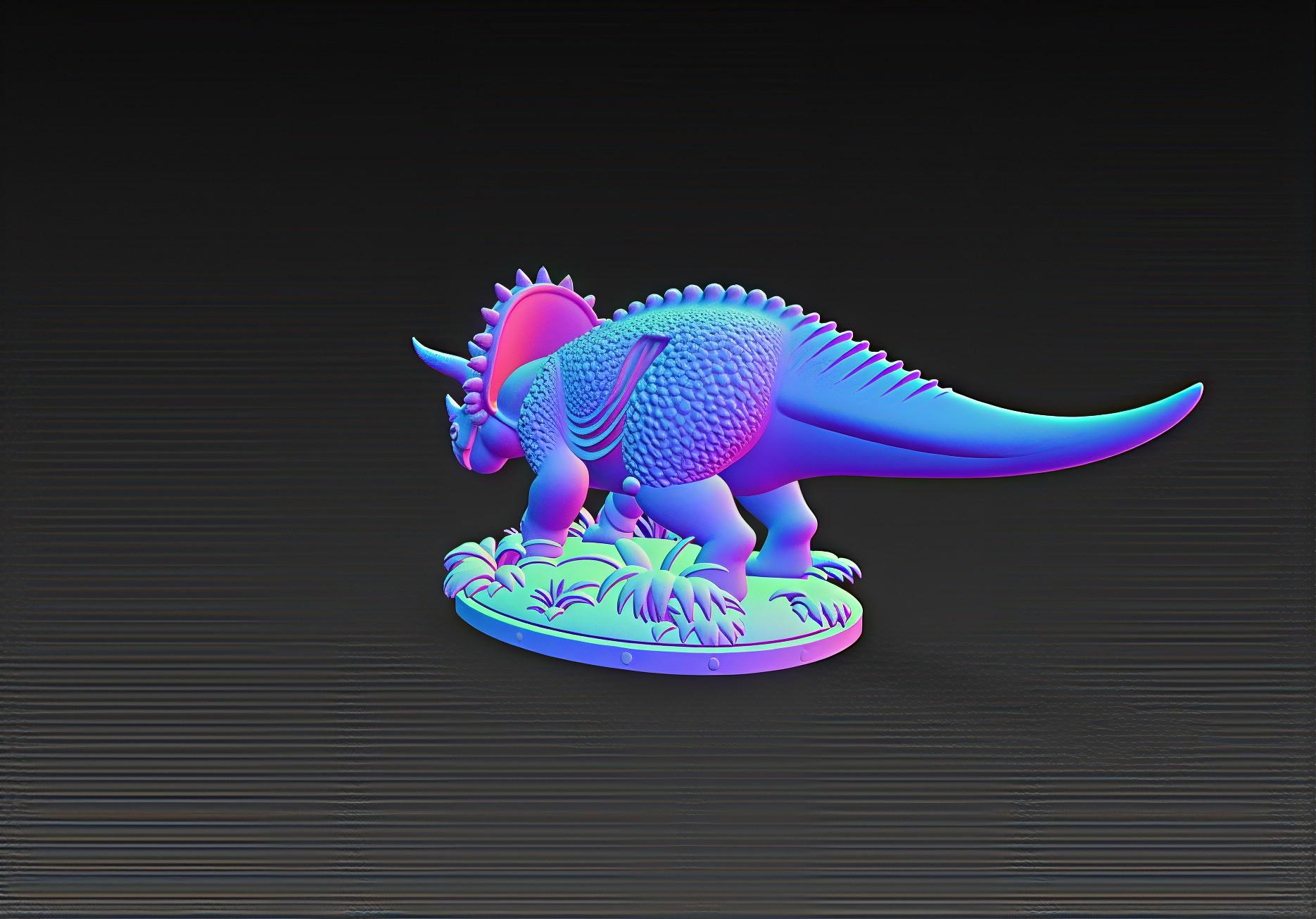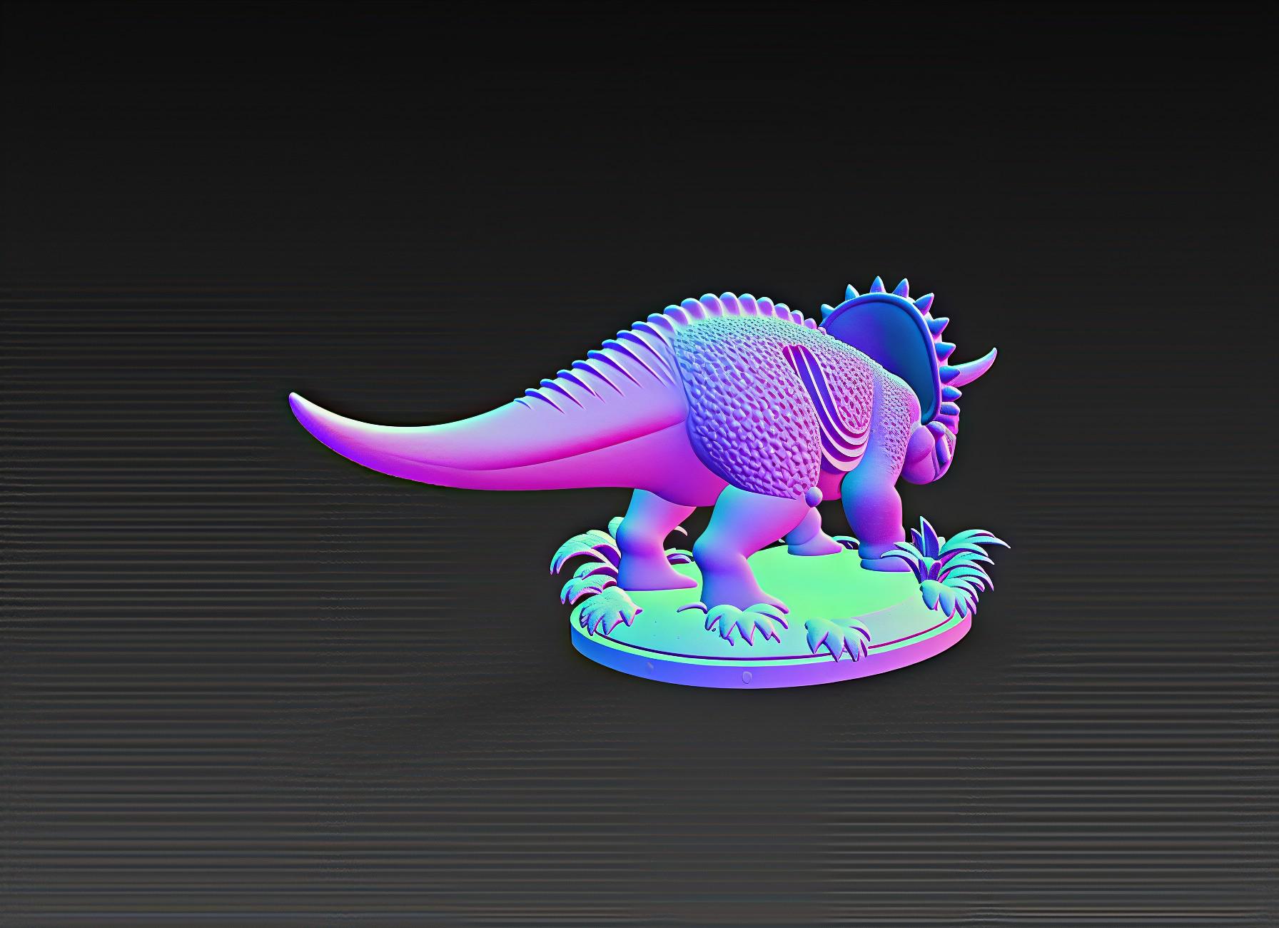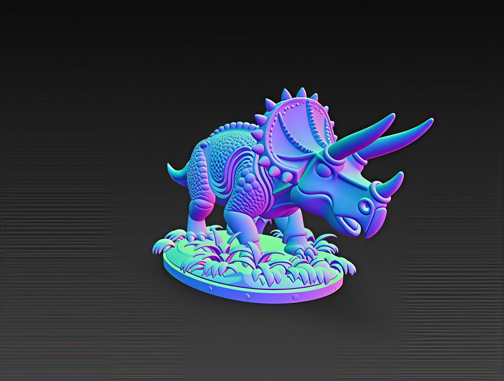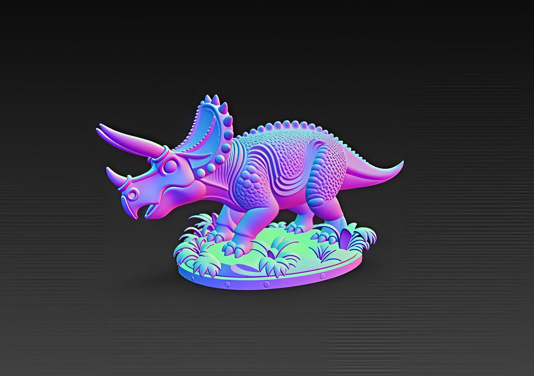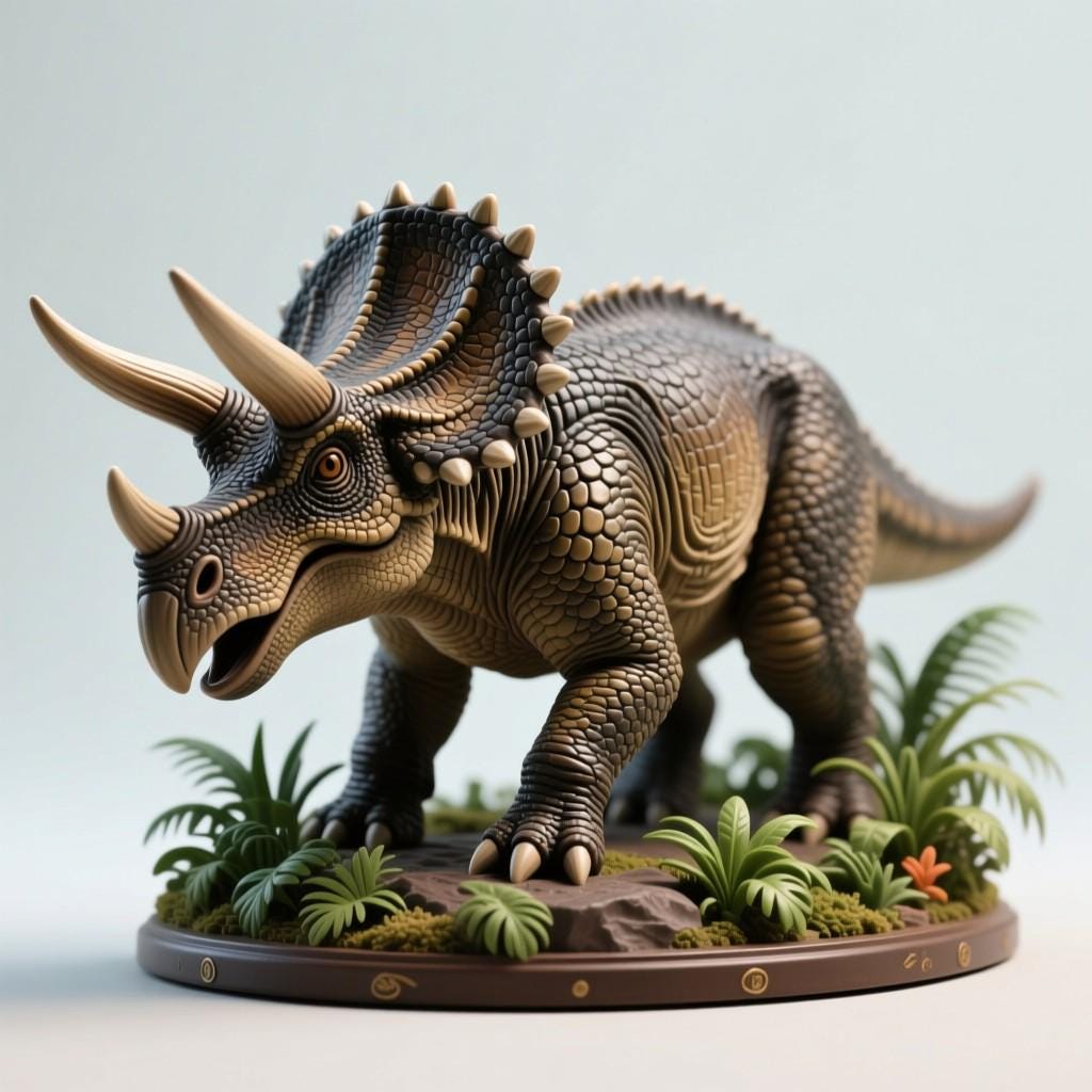 Highly detailed Triceratops dinosaur on a jungle base with realistic scales and horns. Perfect for Jurassic fans, collectors and displays. Digital STL file.
