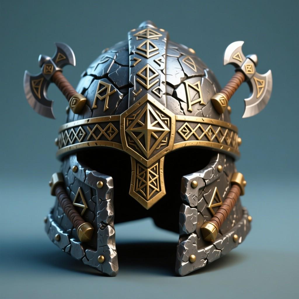 Highly detailed Viking-inspired helmet adorned with twin axes and Norse motifs. Ideal for cosplay, medieval displays, fantasy collectors or epic home decor. Digital STL file for 3D printing.