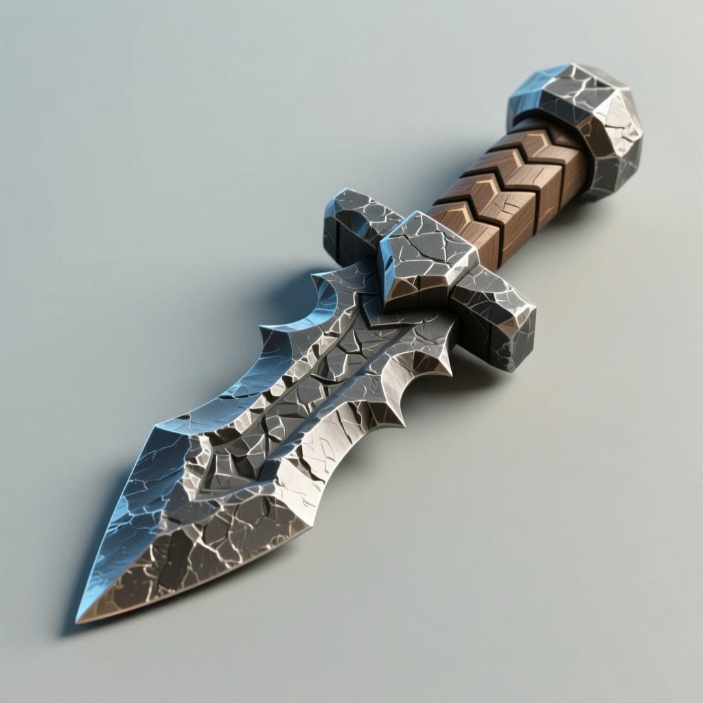 Intricately designed fantasy dagger with cracked stone blade and detailed hilt. Perfect for RPG campaigns, cosplay props, gothic decor and fantasy collectors. Digital STL file for 3D printing.