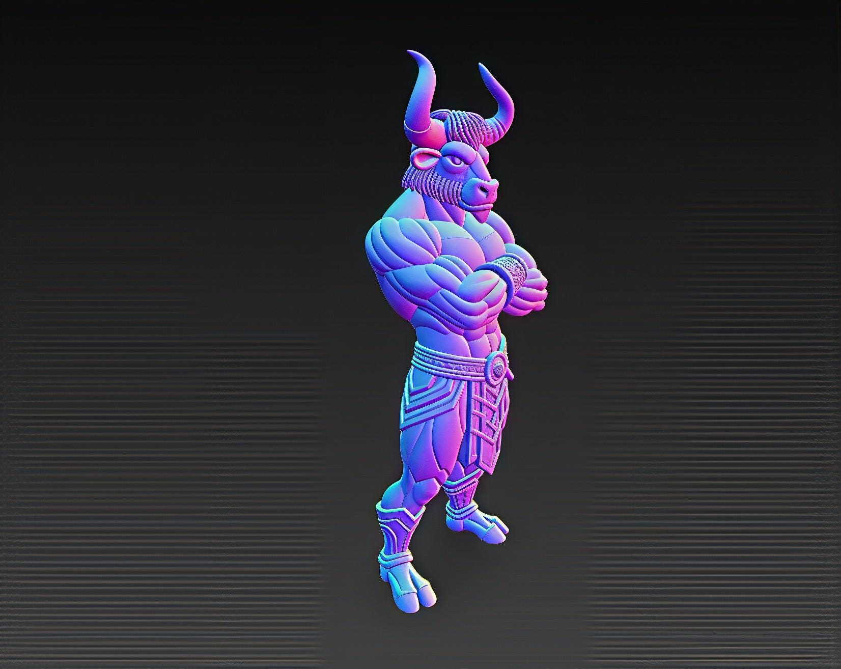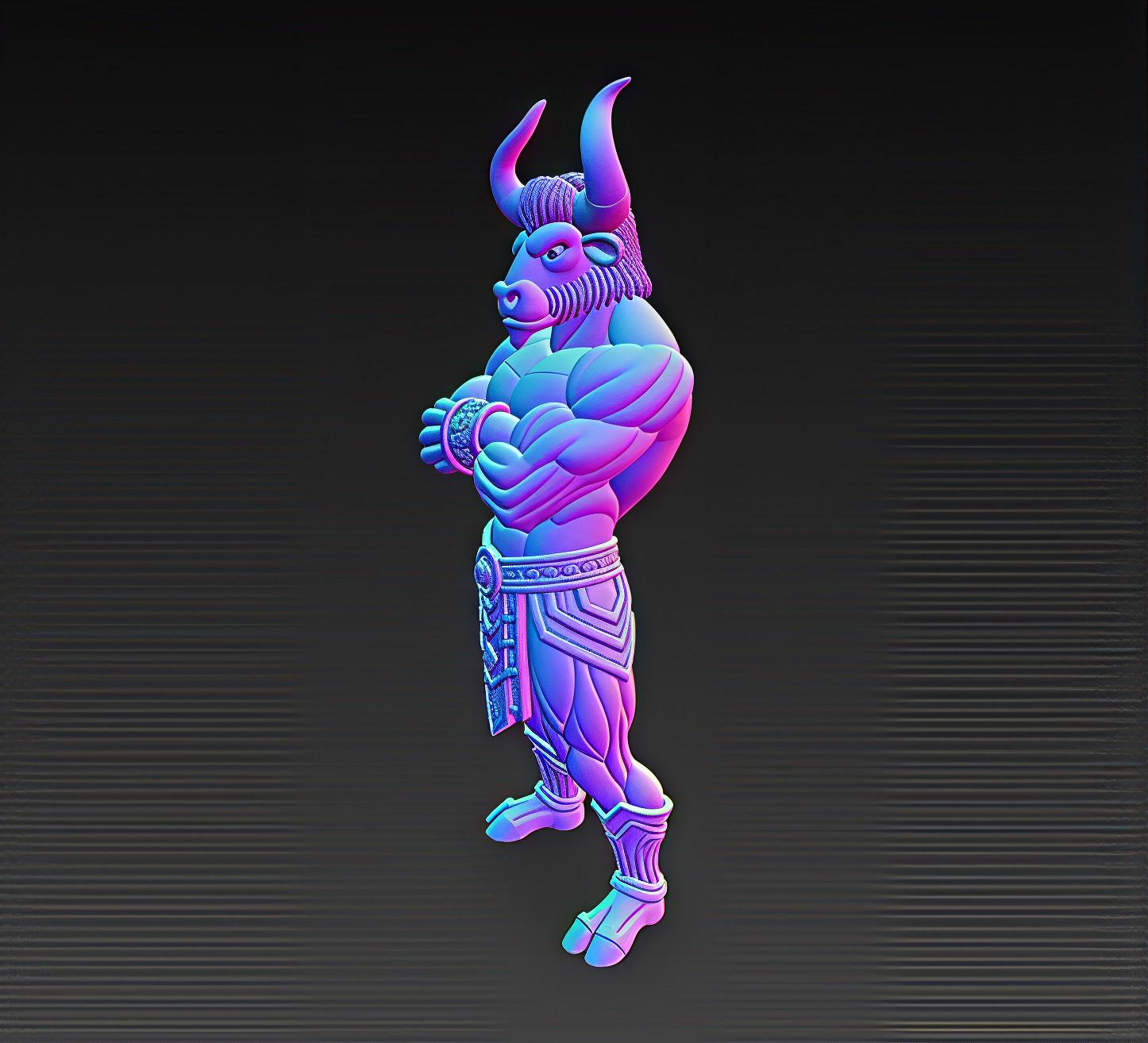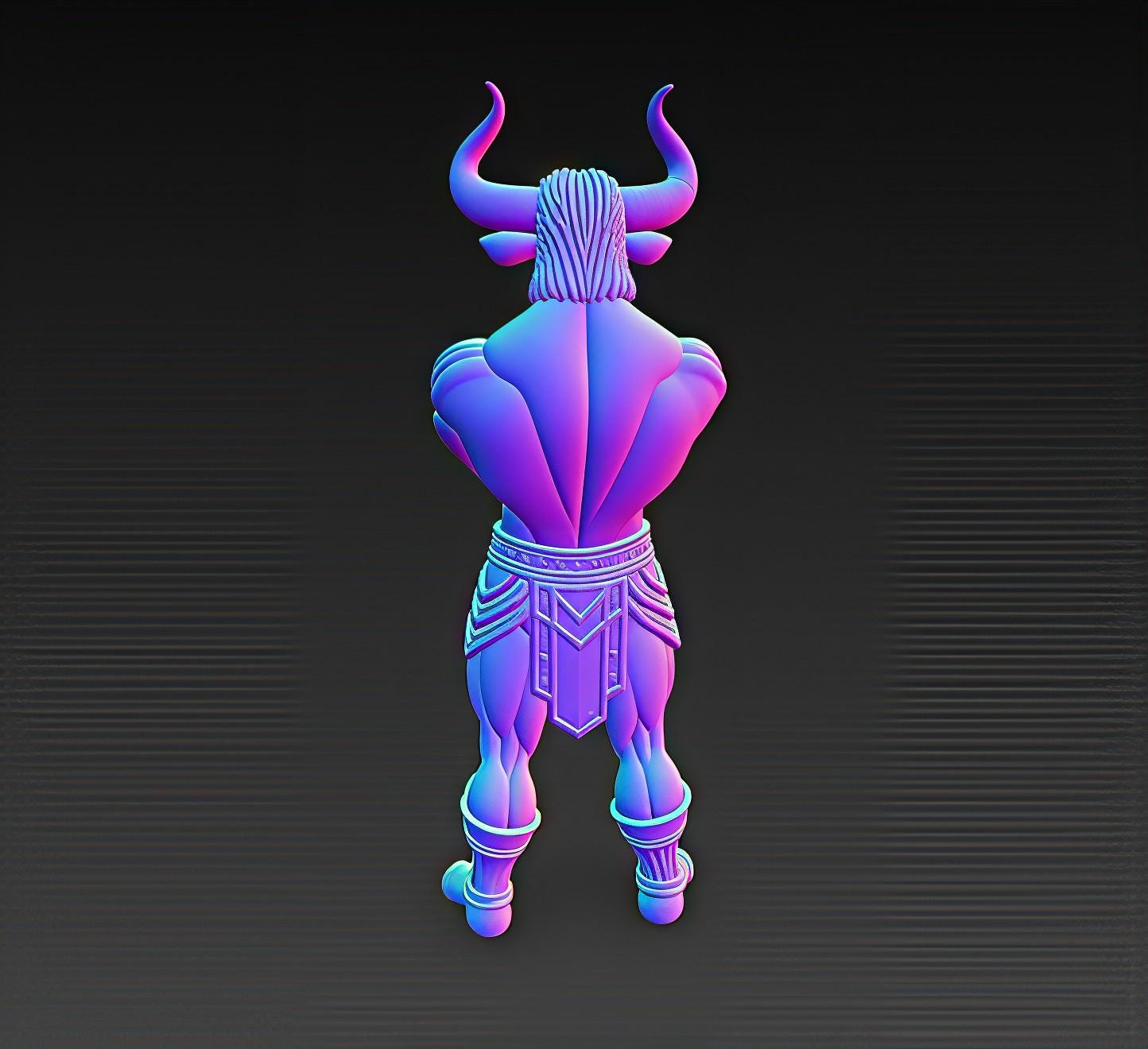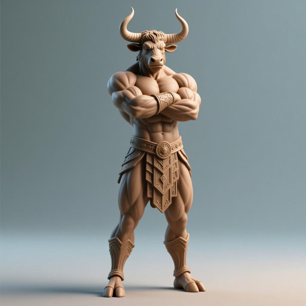 Detailed Minotaur statue with muscular build and ornate tribal armor, inspired by Greek mythology. Perfect for RPG games, fantasy collectors and mythic home decor. Digital STL file.