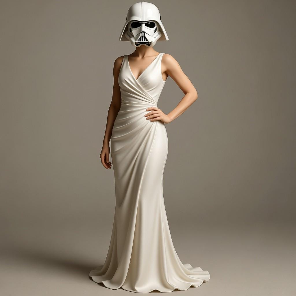 This Sci-Fi Bride STL blends elegance with fandom, featuring a futuristic helmet paired with a flowing gown. Perfect for cosplay enthusiasts, geek weddings, or collectors of quirky 3D printed figurines. Digital STL file only – ready to print.