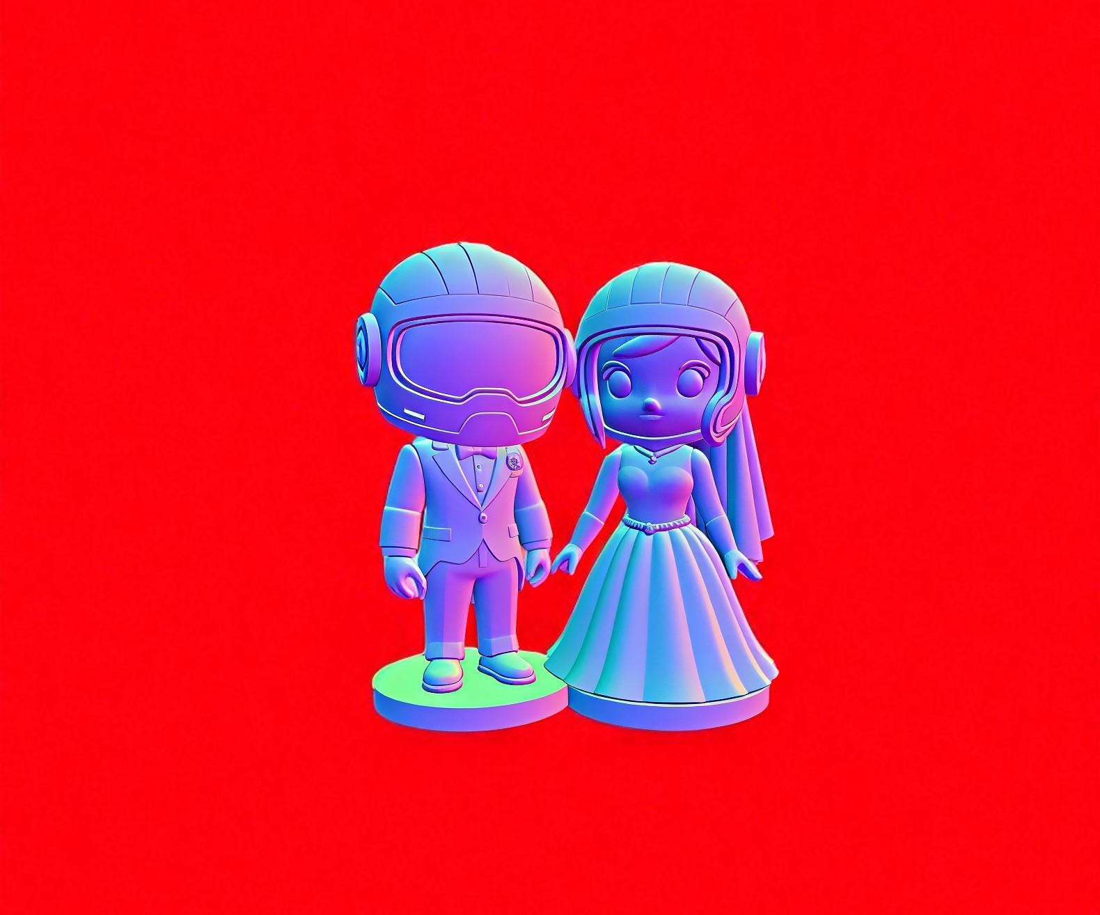 Celebrate your wedding with a geeky twist! This 3D printable Sci-Fi Wedding Cake Topper features a futuristic bride and groom in elegant attire with modern helmets. Perfect for nerdy couples, cosplay lovers, and unique wedding décor. Digital STL file – instant download.