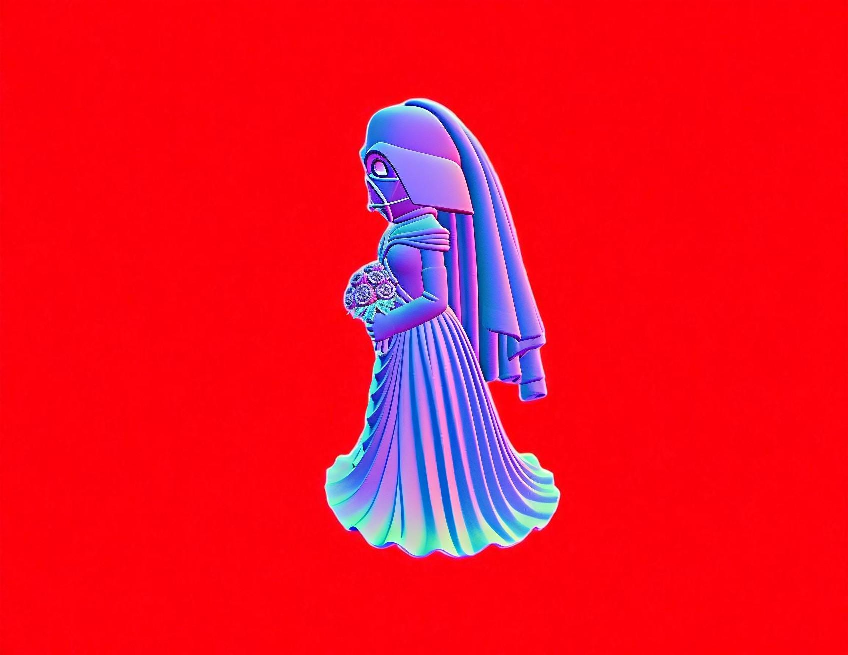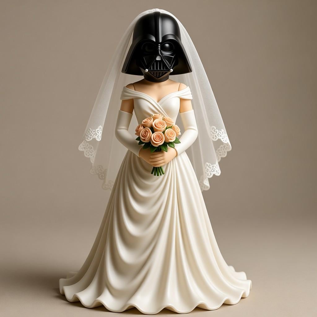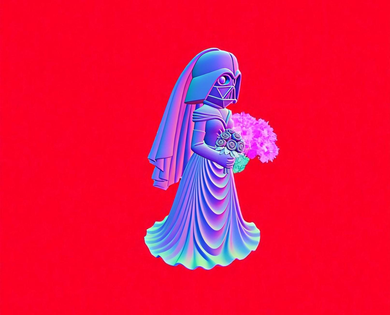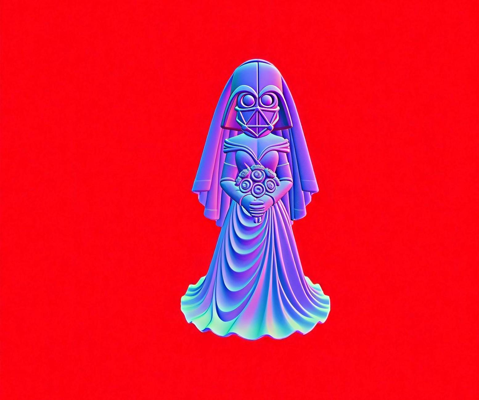 Unique sci-fi bride STL file for 3D printing. Perfect as a geeky wedding cake topper or fun decor.