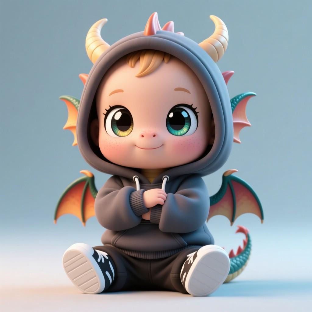 Adorable baby dragon STL file for 3D printing. Fantasy-inspired hoodie design, perfect for gifts, decor, or collectible displays.