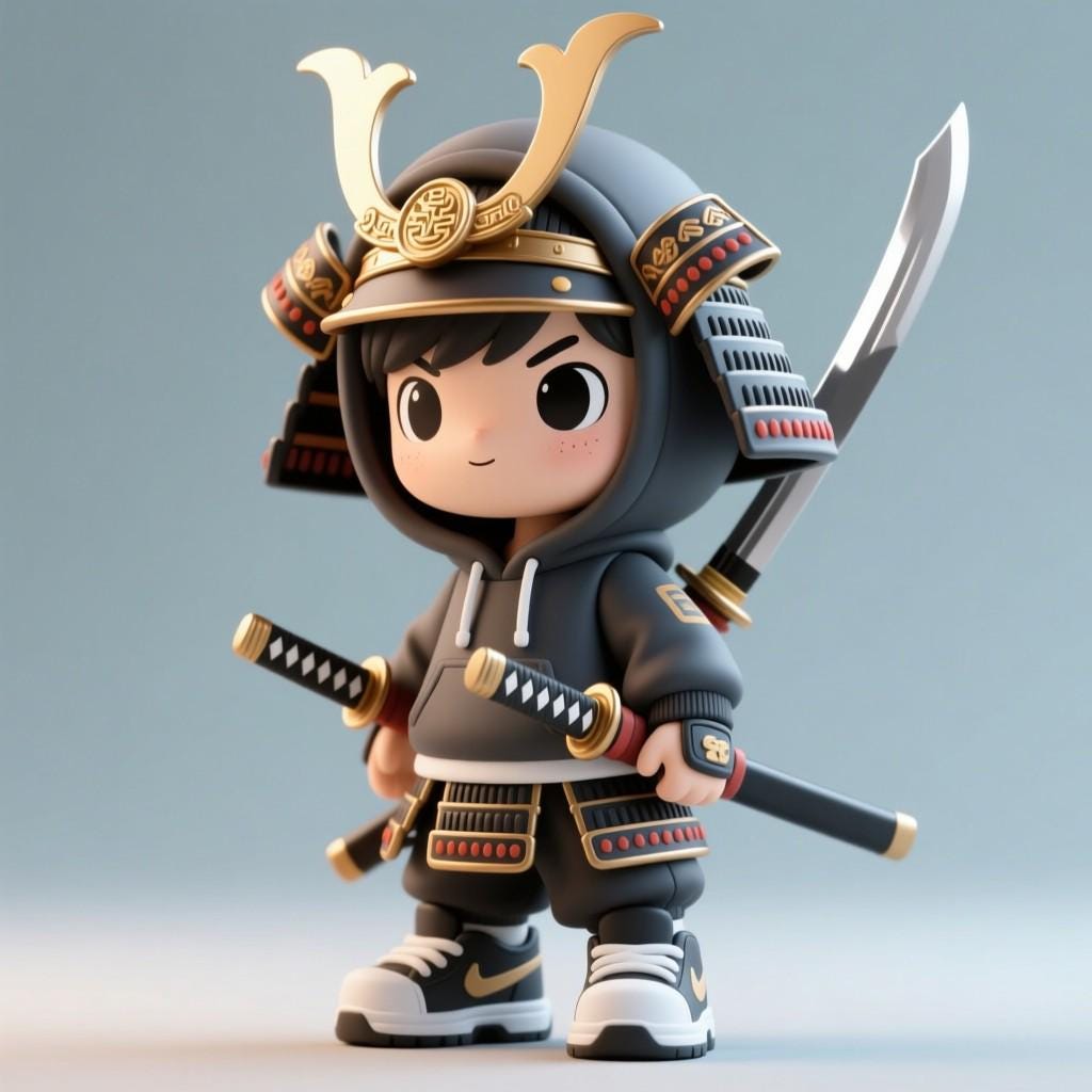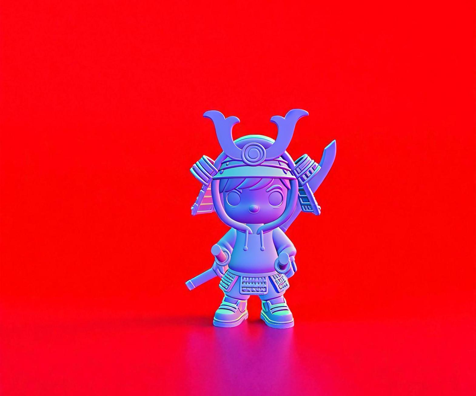 Cute samurai warrior STL file, ready for 3D printing. A mix of traditional armor and modern hoodie style. Perfect for collectors, gifts, or unique decor.