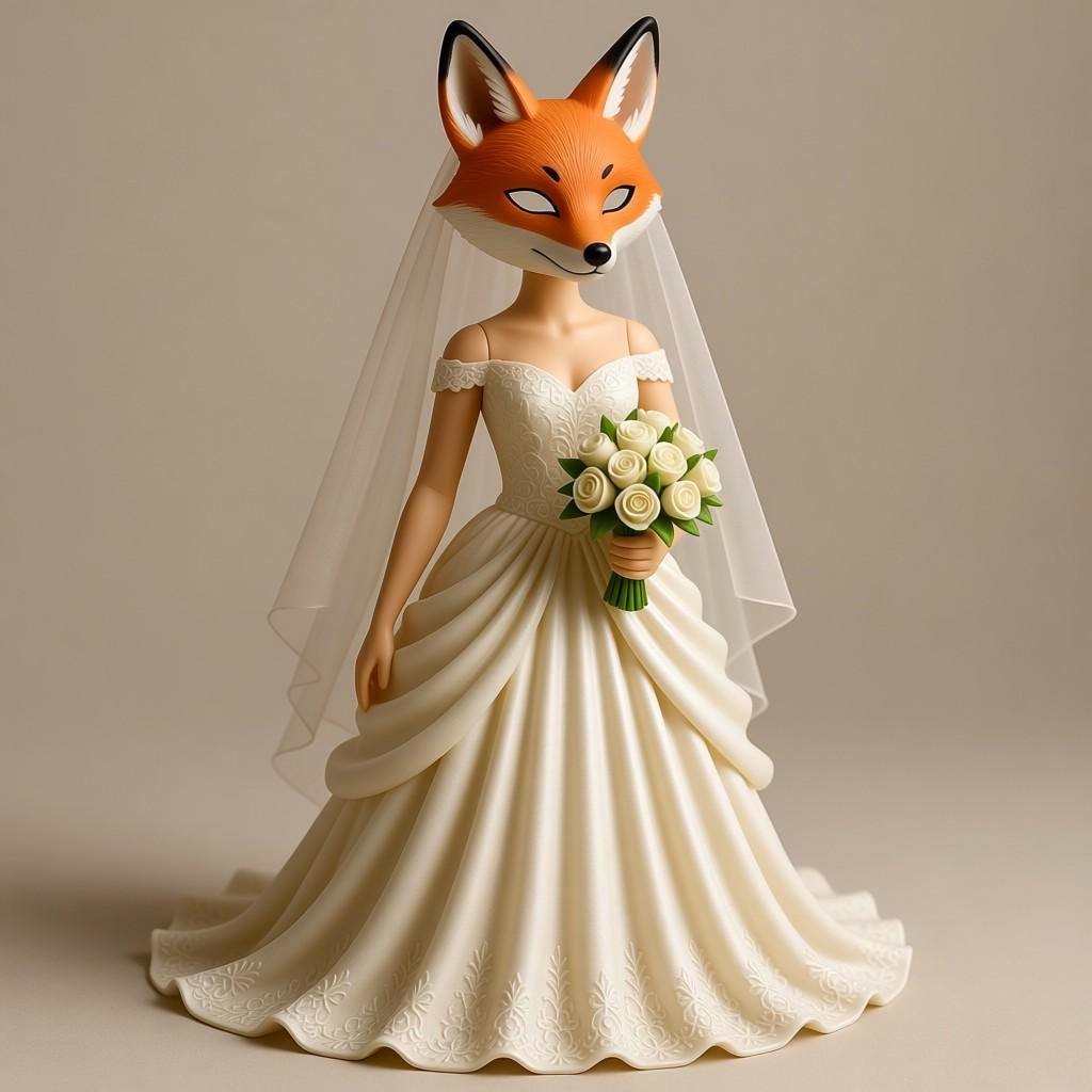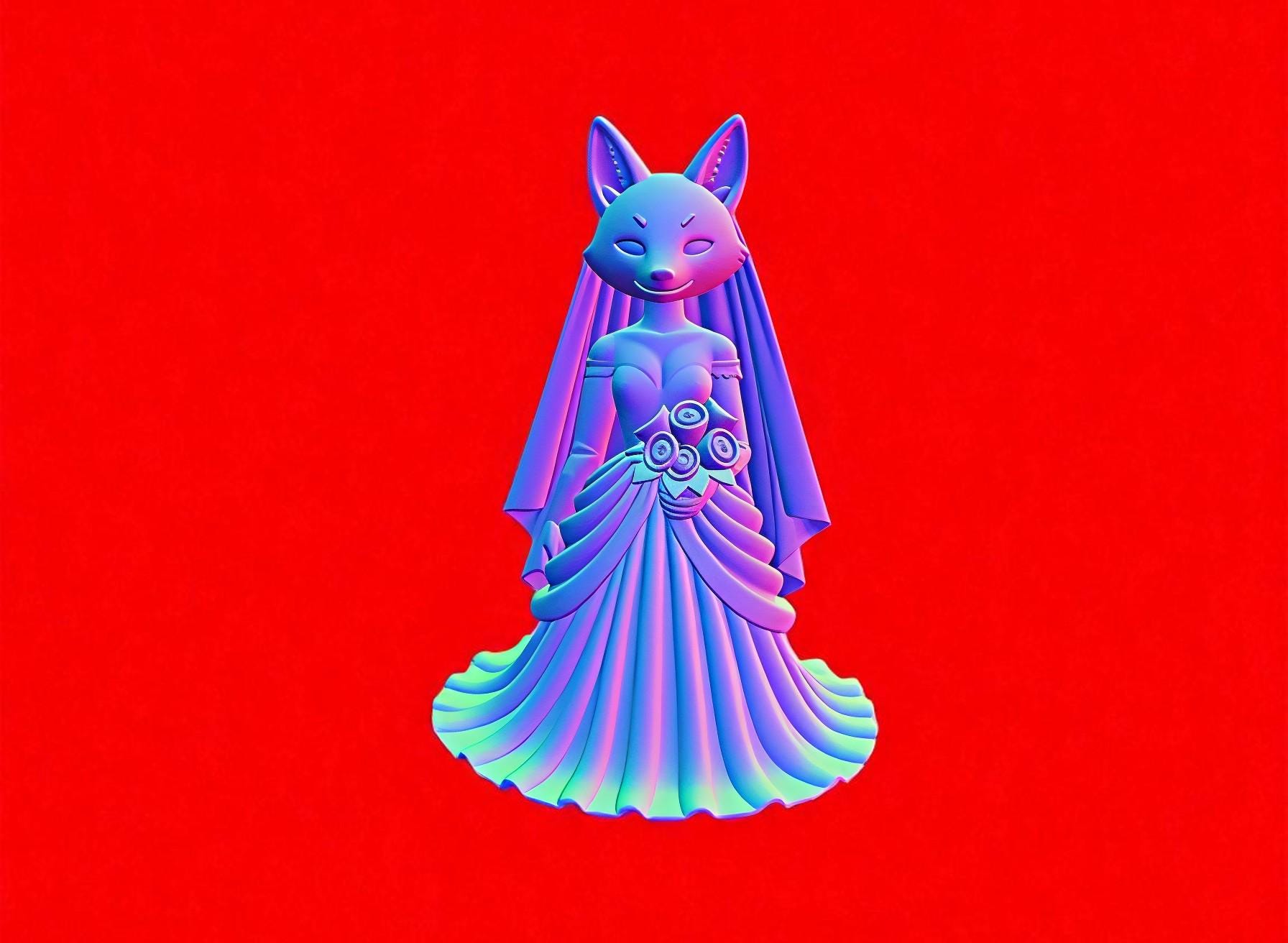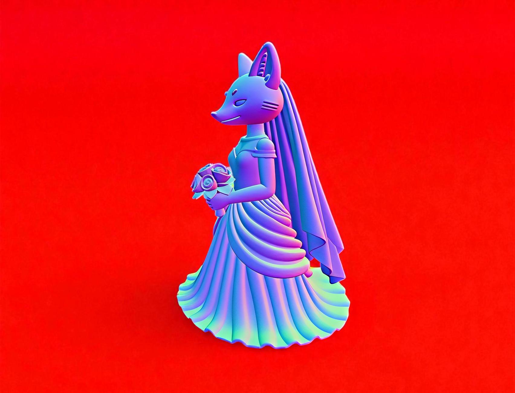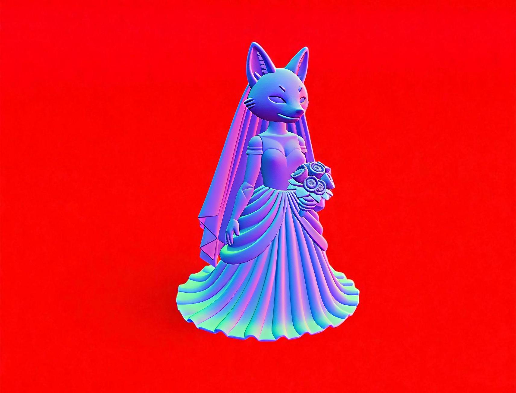 Fox bride figurine STL for 3D printing. A unique wedding-themed character model, perfect for collectors and decor. Digital download only.