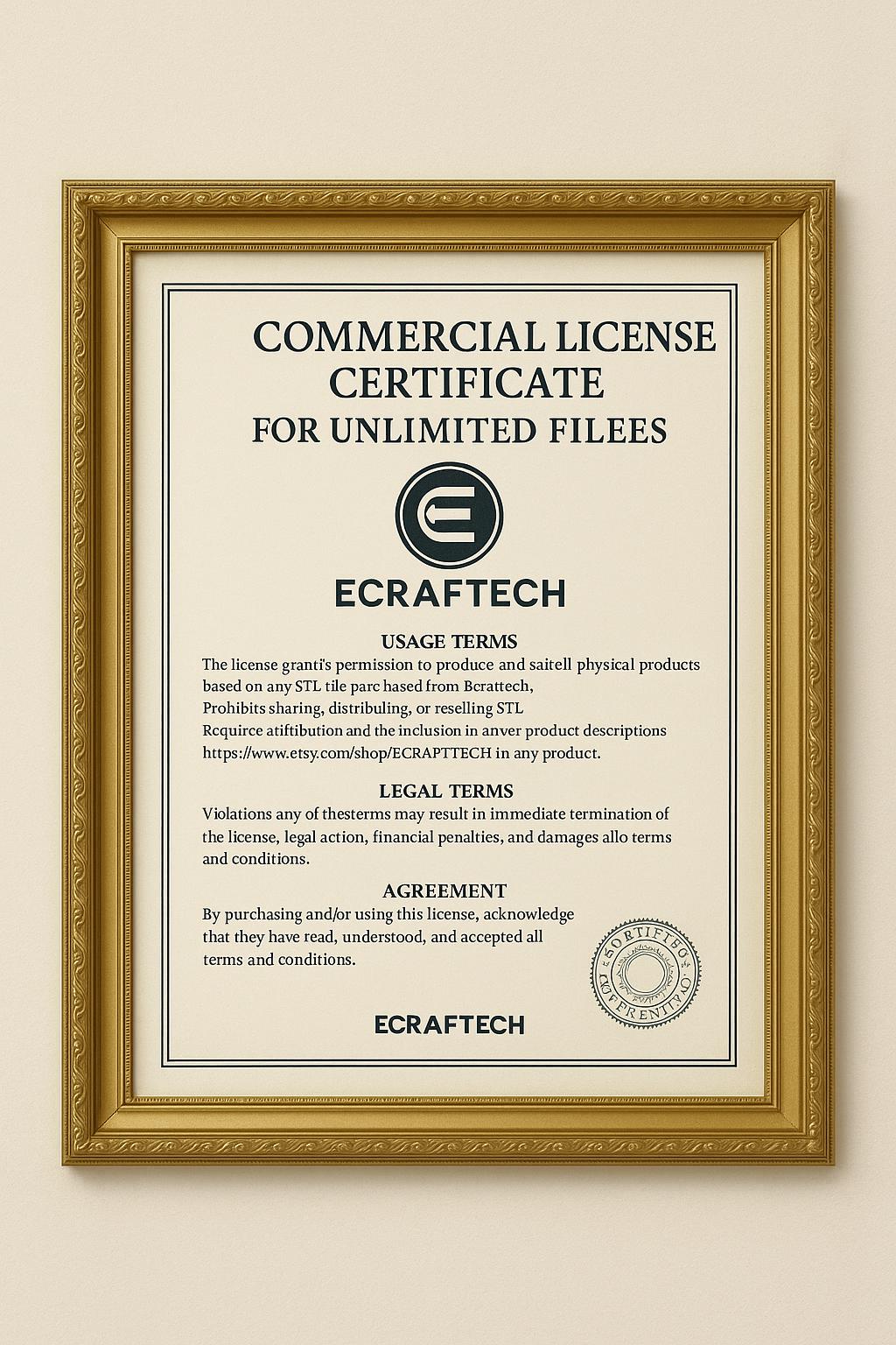 This license grants unlimited commercial rights to use all STL files in the ECRAFTECH shop for physical product sales.