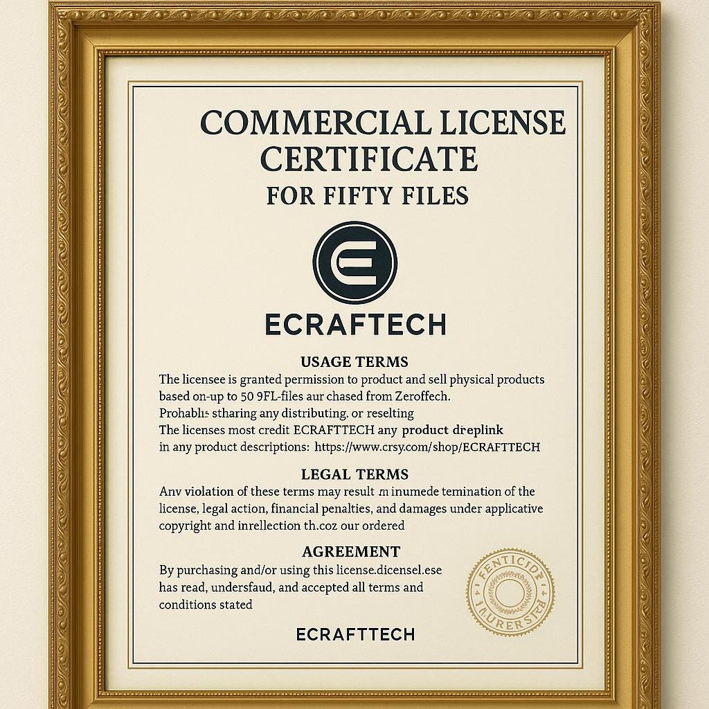 This license covers any 50 STL files from the ECRAFTECH shop. You may produce and sell physical products using these files.