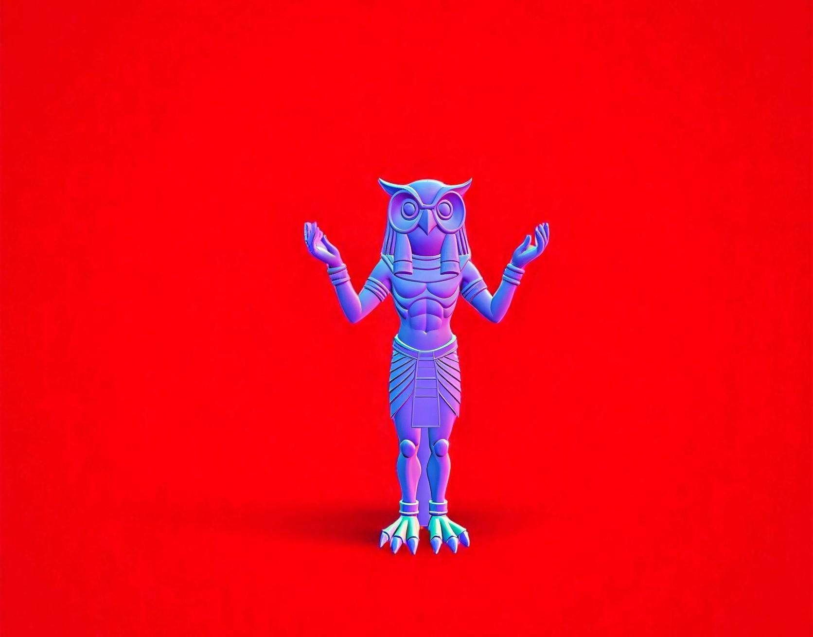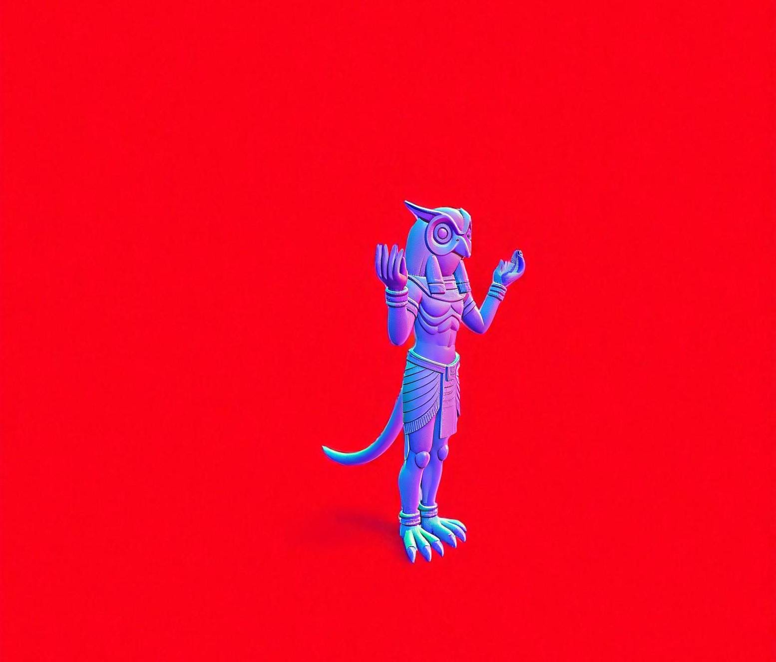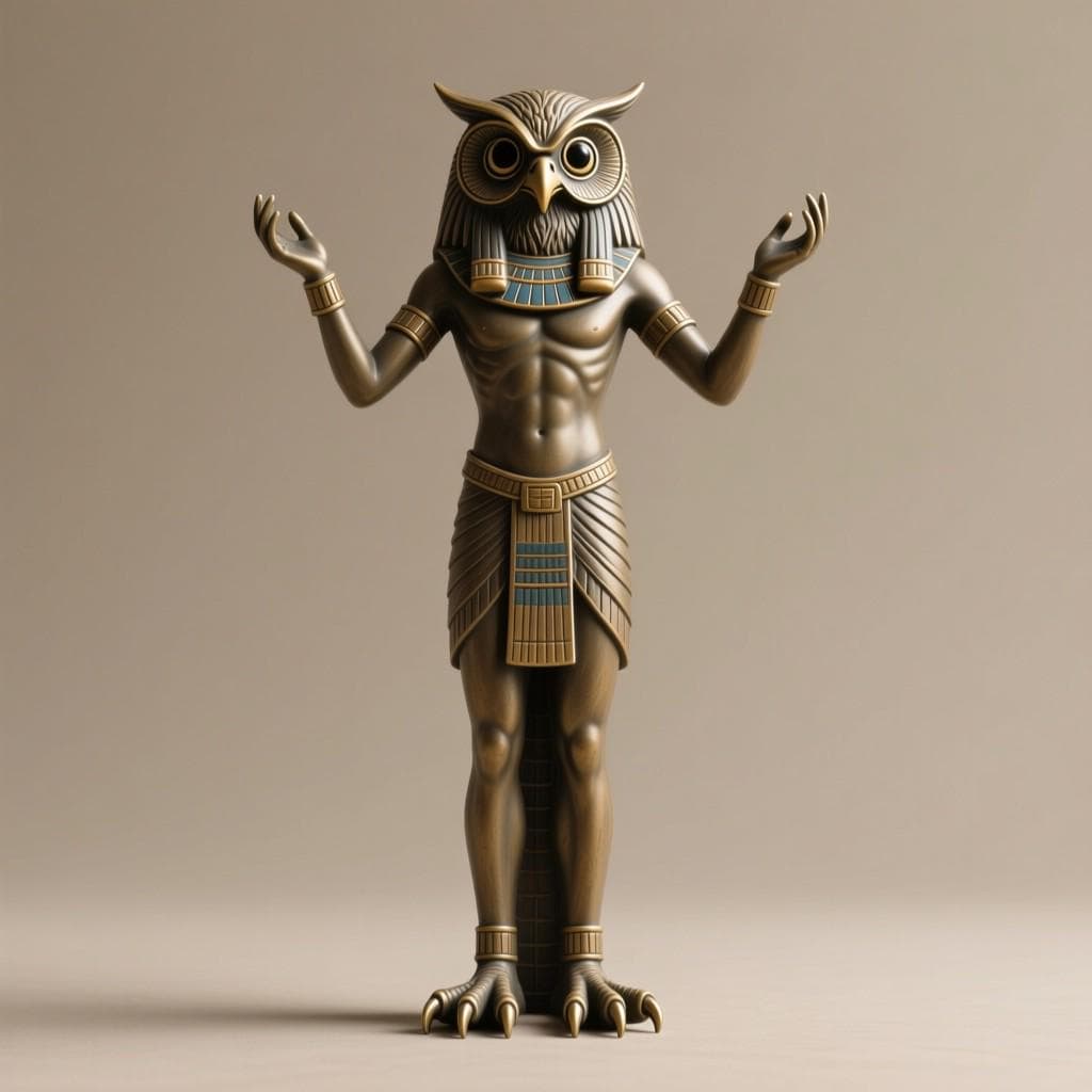 3D printable Egyptian-inspired warrior with owl head design. A unique mythology-style figurine for display or collection. Digital STL file only.