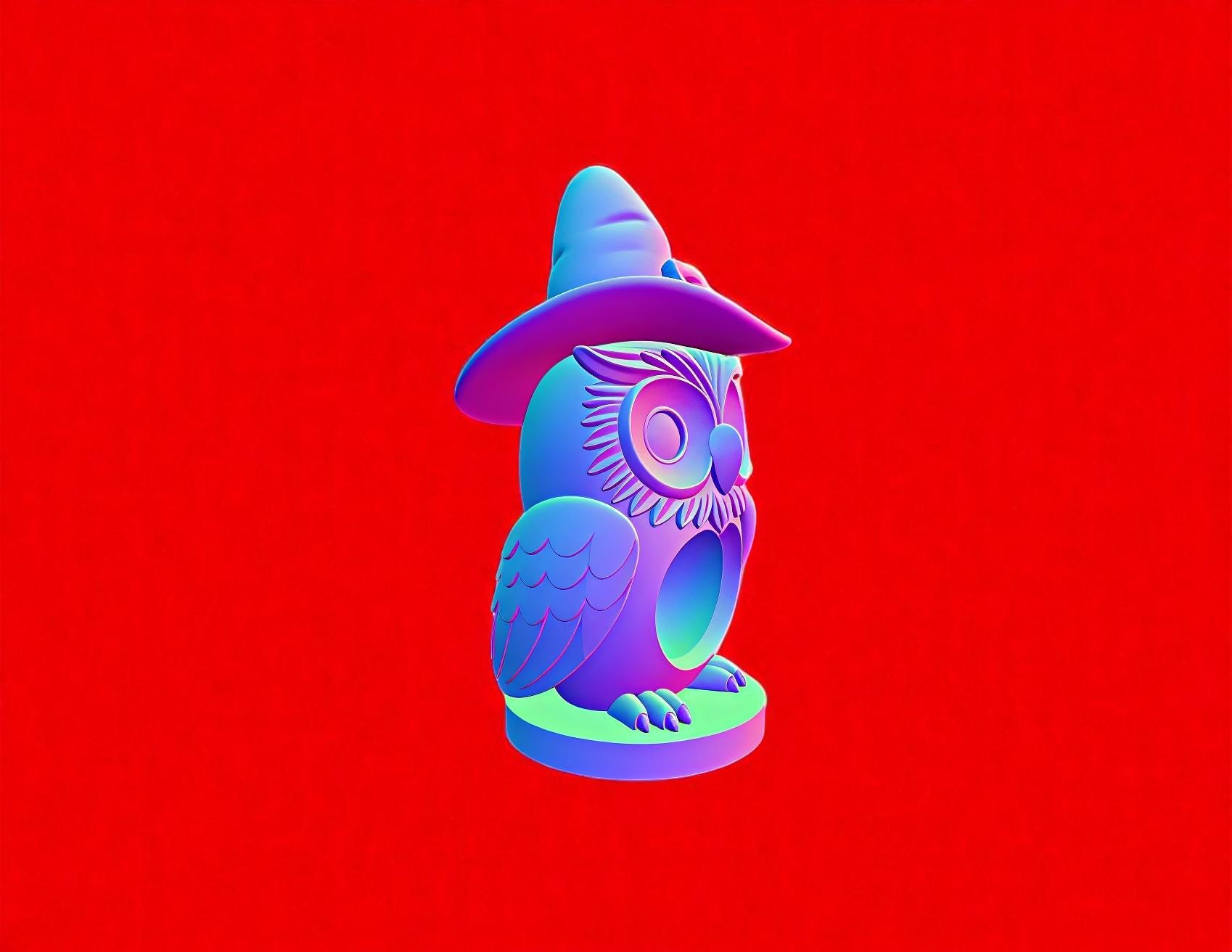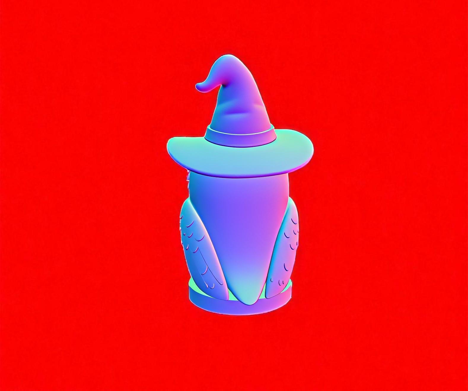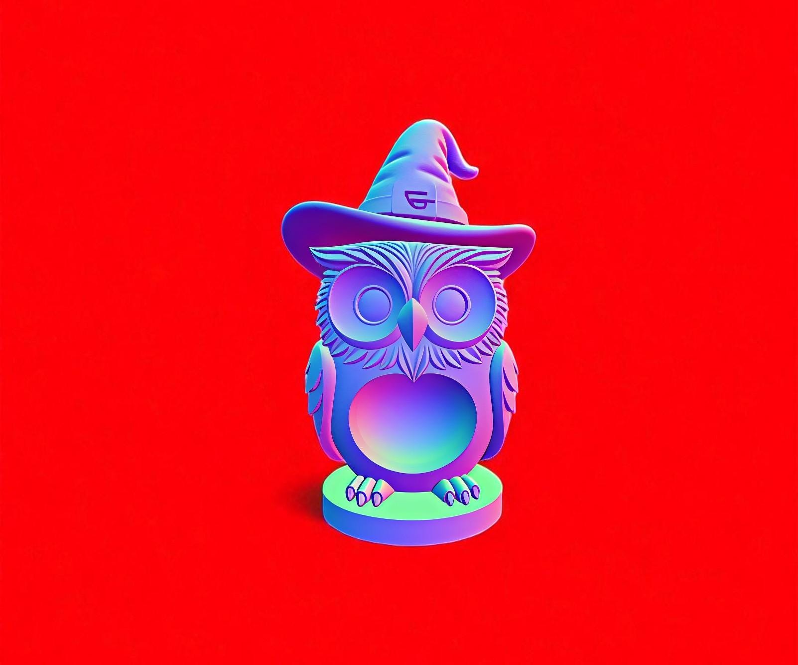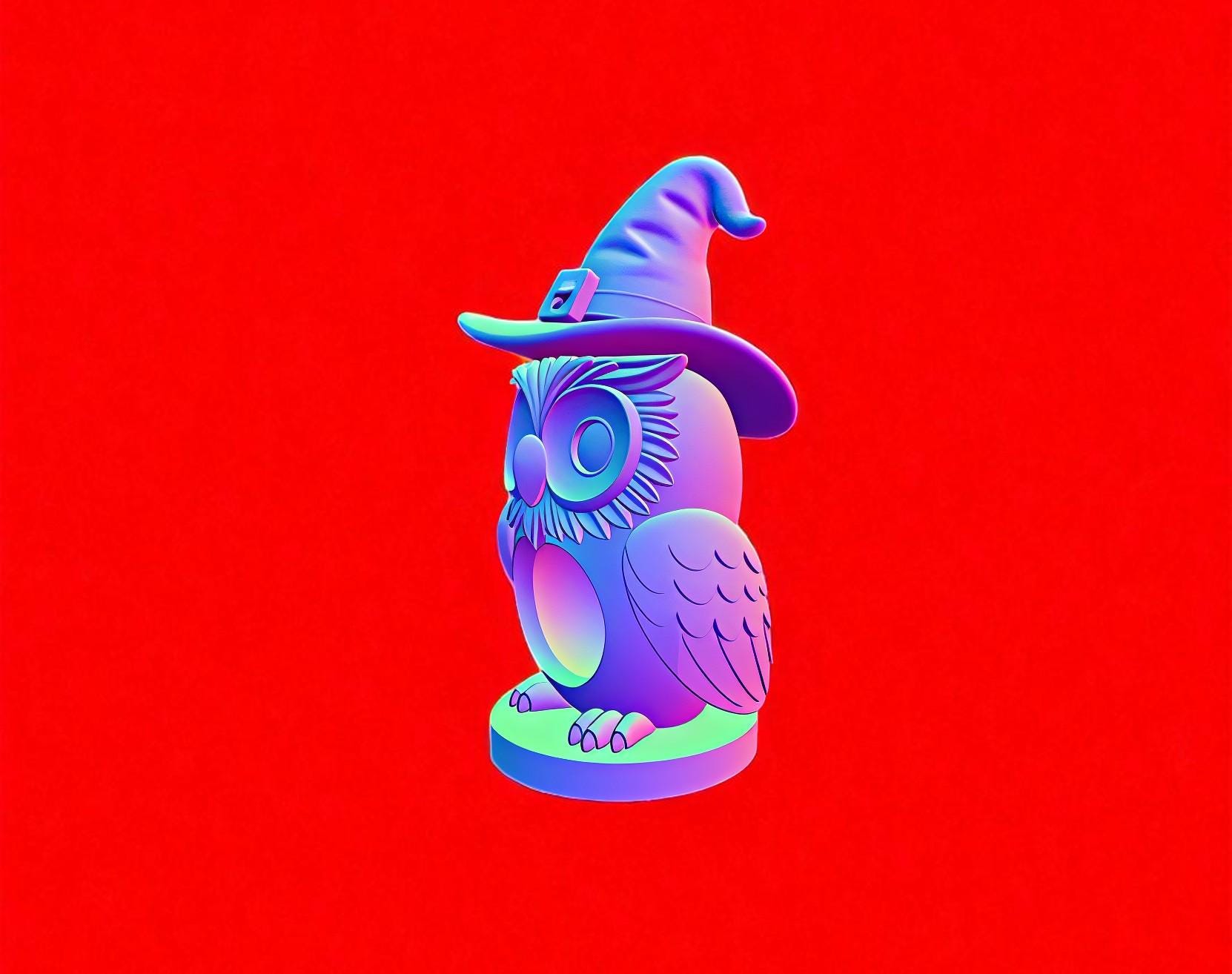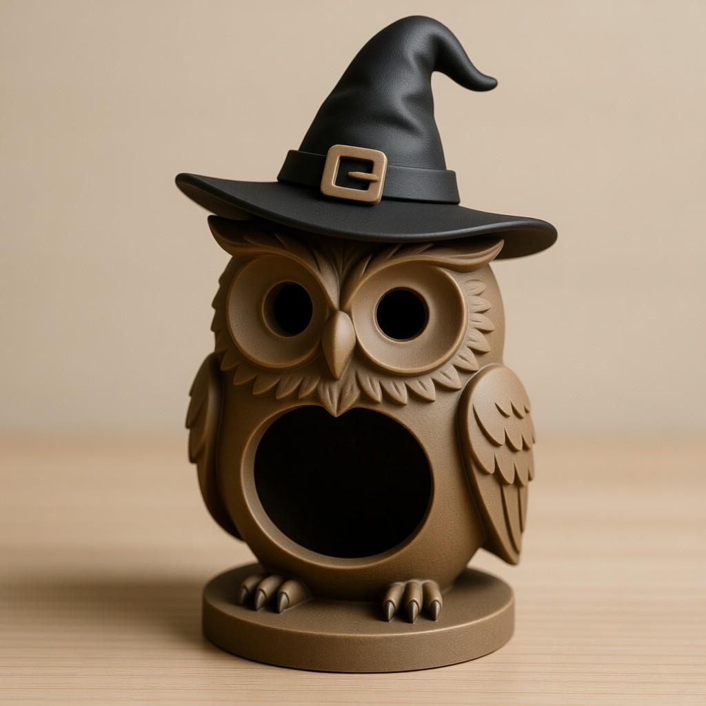 3D printable owl figurine with a witch hat, perfect for spooky Halloween decor. Fun and unique design for your seasonal decorations. Digital STL file only.