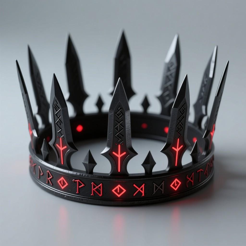 Dark fantasy spiked crown with rune details. Perfect for cosplay, gothic decor, or tabletop displays. Digital STL file only.