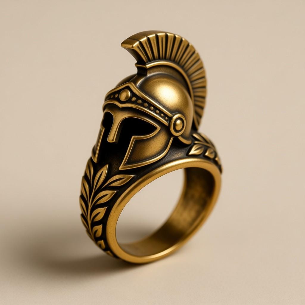 A bold Spartan helmet ring design inspired by ancient warriors. Perfect for cosplay, collectors, or unique gifts. Digital STL file only.