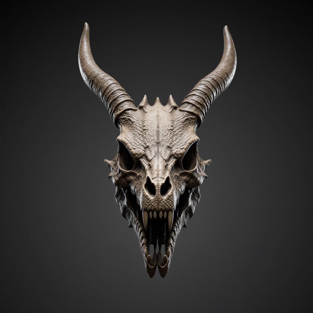 Highly detailed dragon skull STL file for 3D printing. Perfect as a gothic wall decoration, fantasy collectible, or unique display piece. Digital file only.