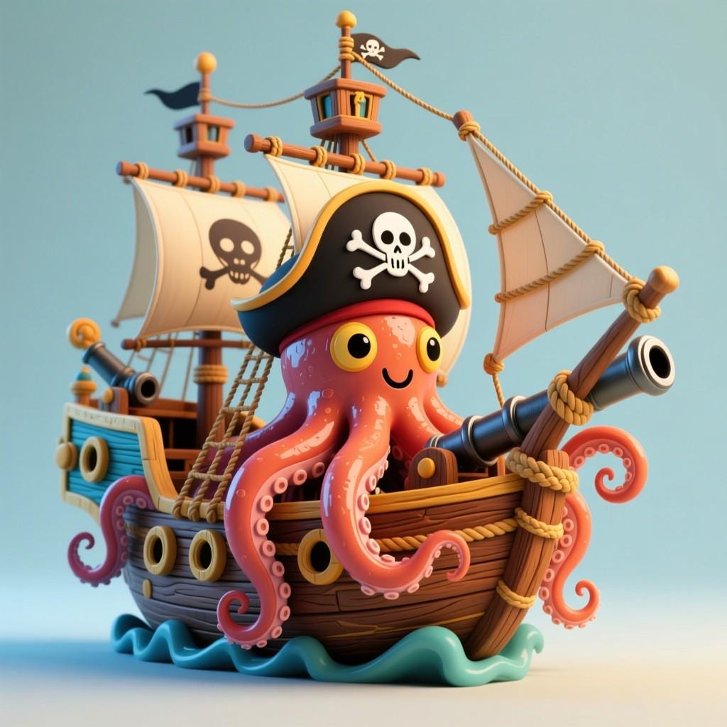 Adorable Pirate Octopus Ship STL file featuring a cute octopus captain on a pirate ship. Perfect for ocean lovers, kids’ room décor, and fun 3D prints. Digital file only – no physical item.