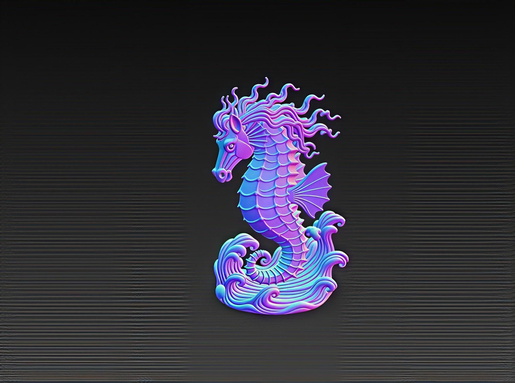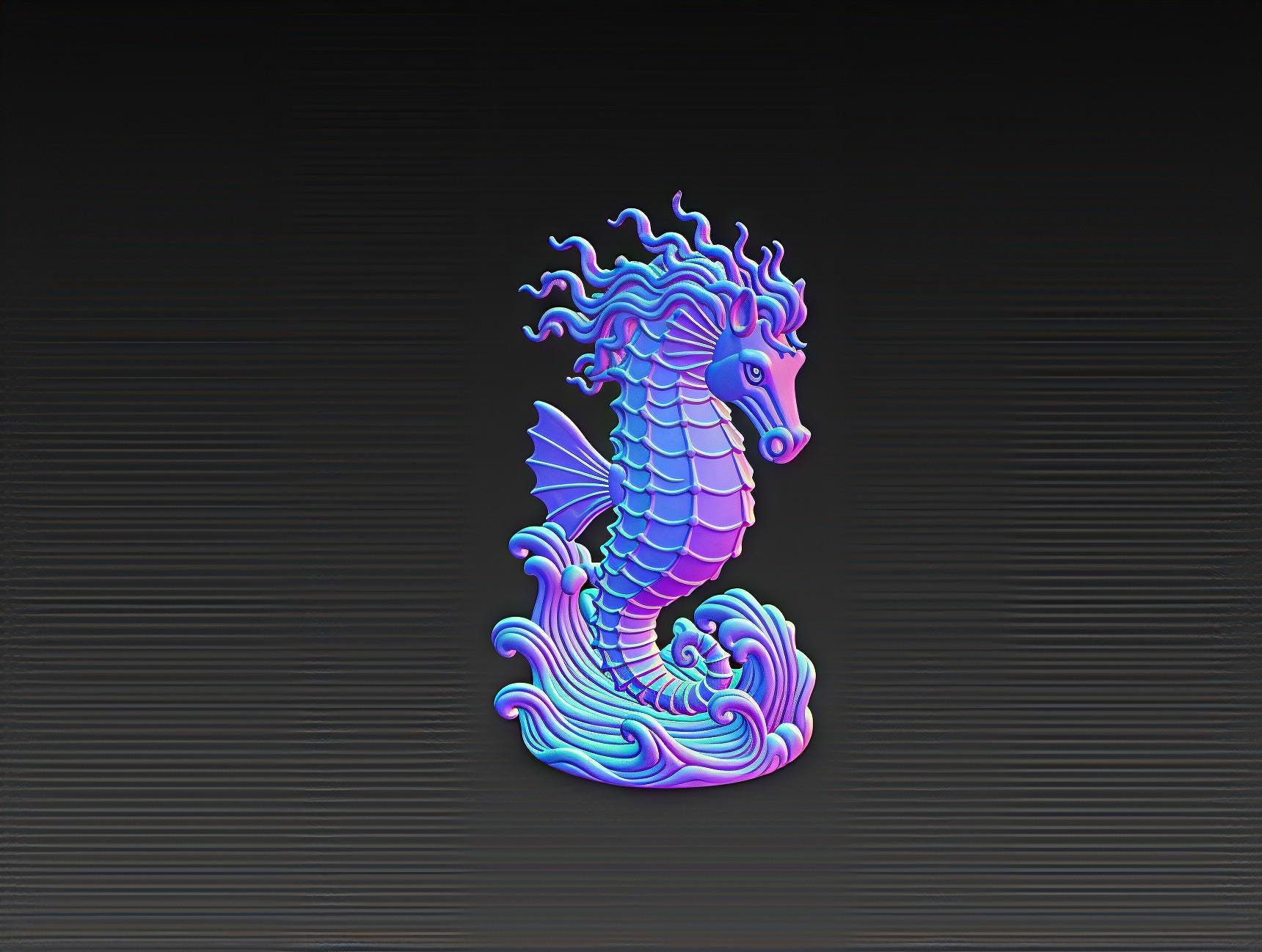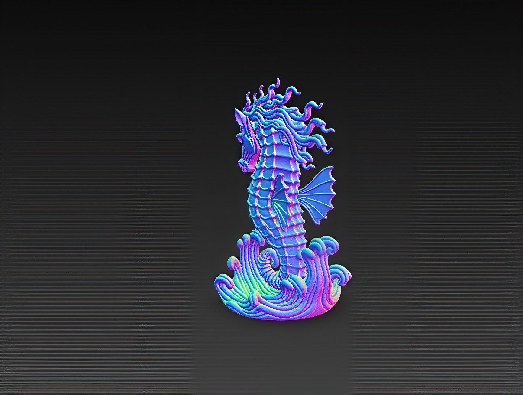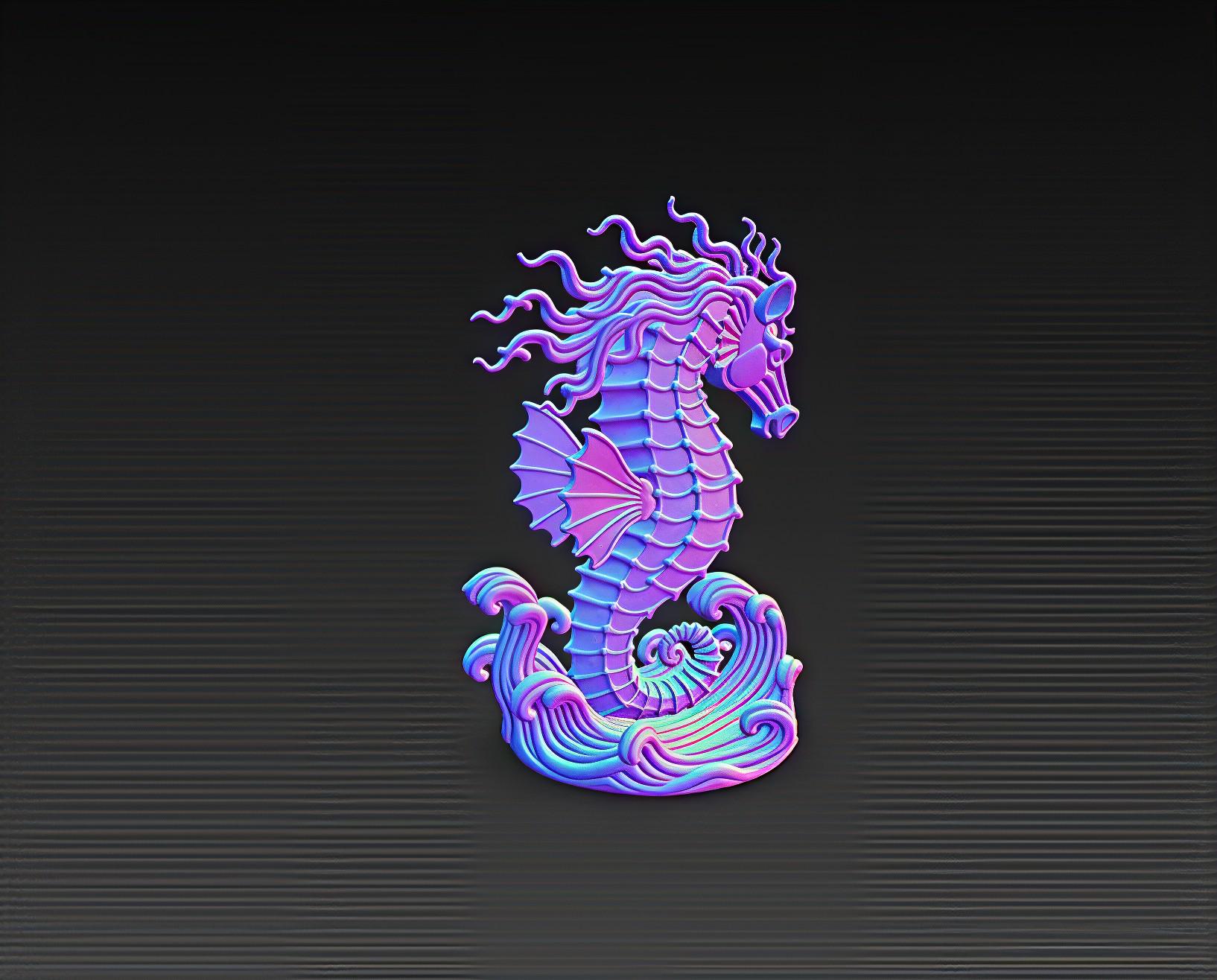 Majestic Seahorse Fantasy STL file featuring a mythical sea creature with flowing mane and ocean wave base. Perfect for fantasy lovers, marine life collectors, and 3D printing enthusiasts. Digital file only – no physical item.
