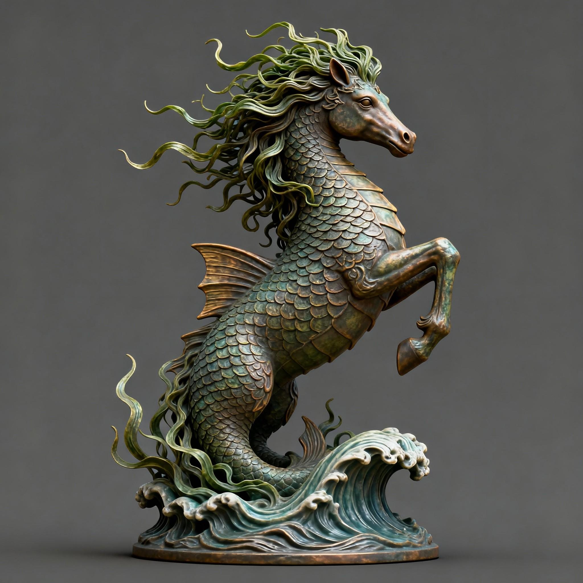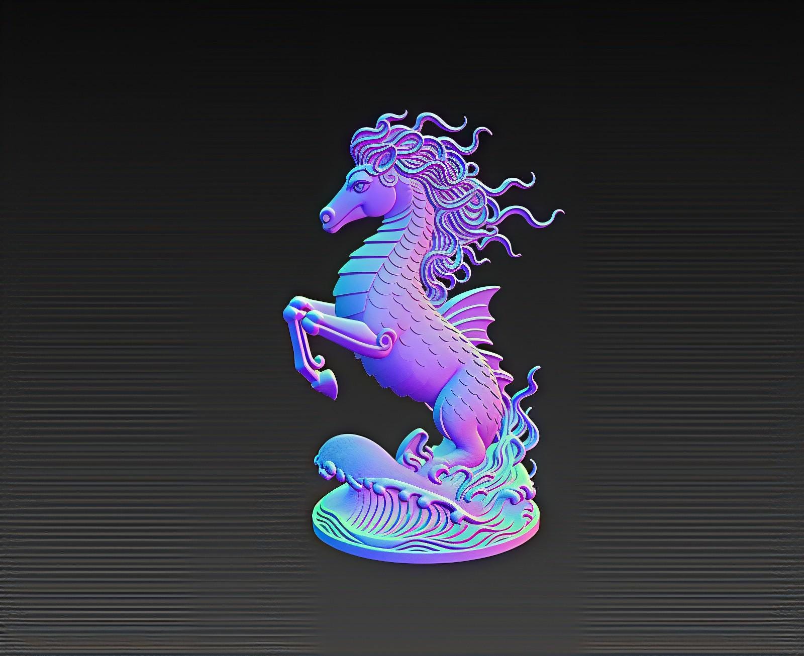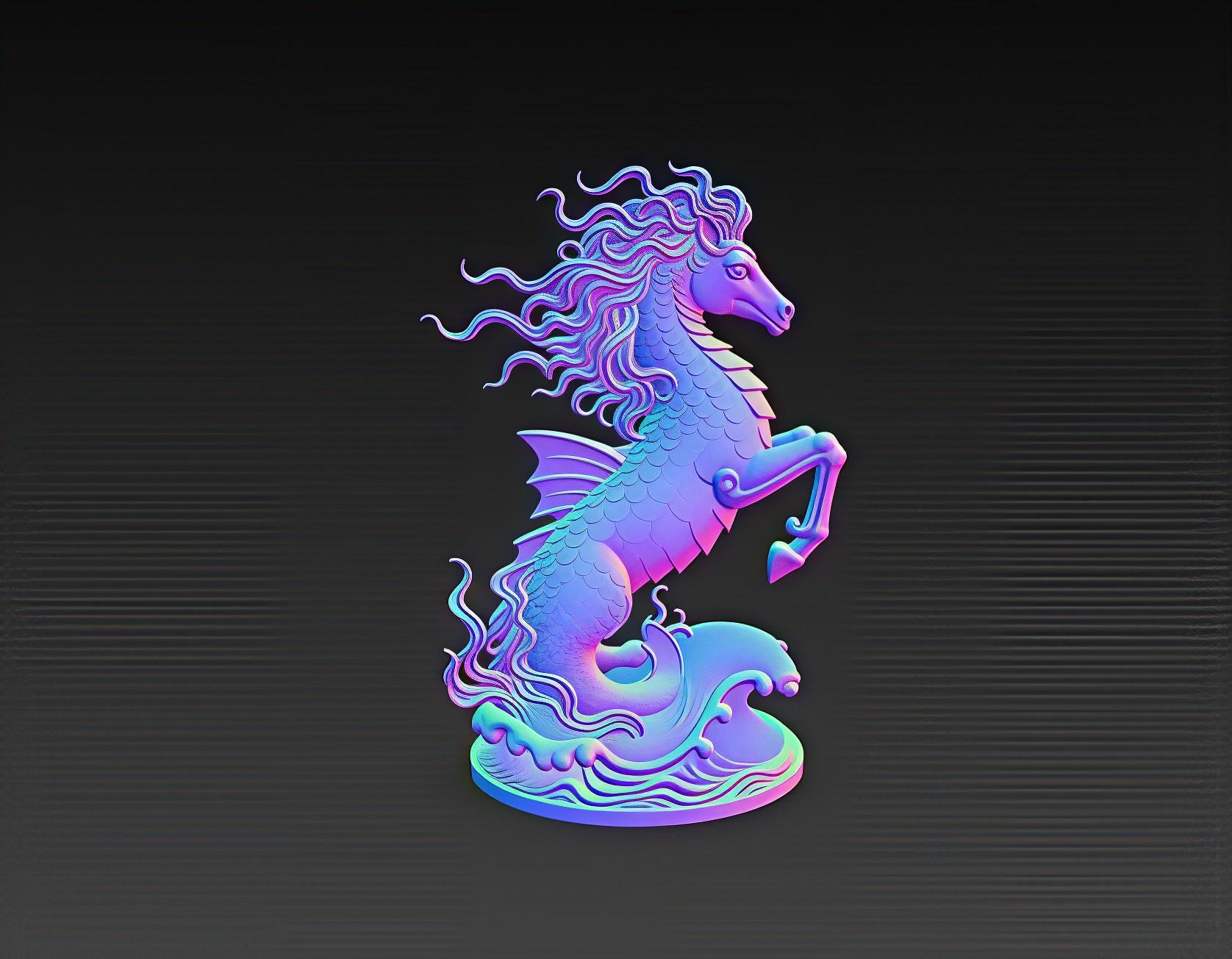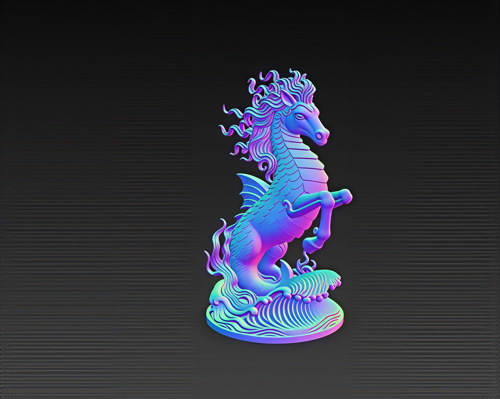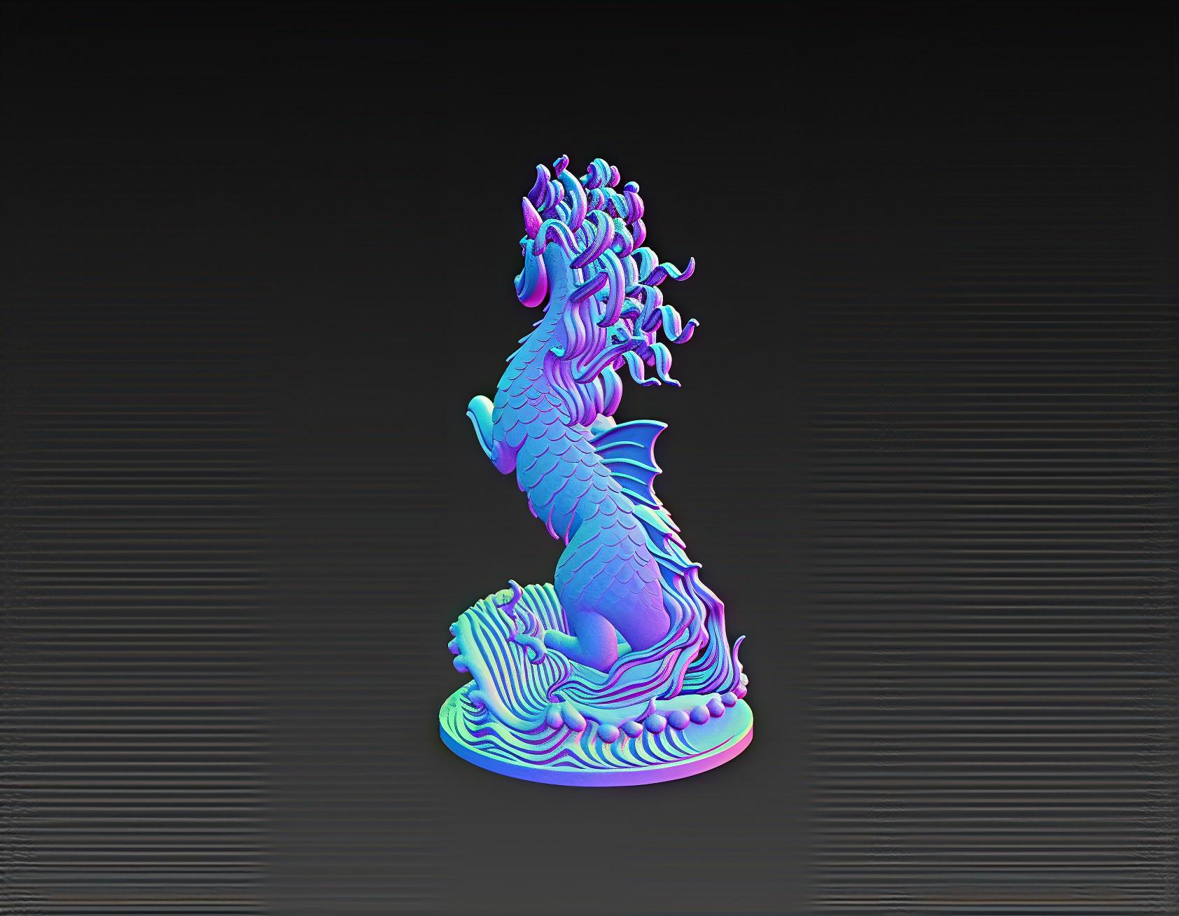 Majestic Hippocampus STL file featuring a mythical sea horse rearing above detailed ocean waves. Perfect for fantasy collectors, ocean-themed décor, and 3D printing enthusiasts. Digital file only – no physical item.