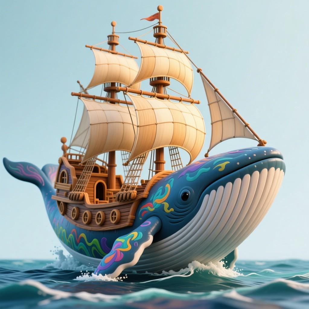 Unique Whale Ship STL file featuring a majestic whale carrying a sailing vessel on its back. Perfect for fantasy lovers, nautical décor collectors, and 3D printing enthusiasts. Digital file only – no physical item.