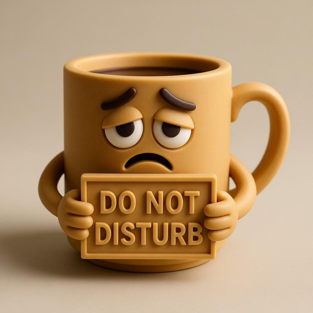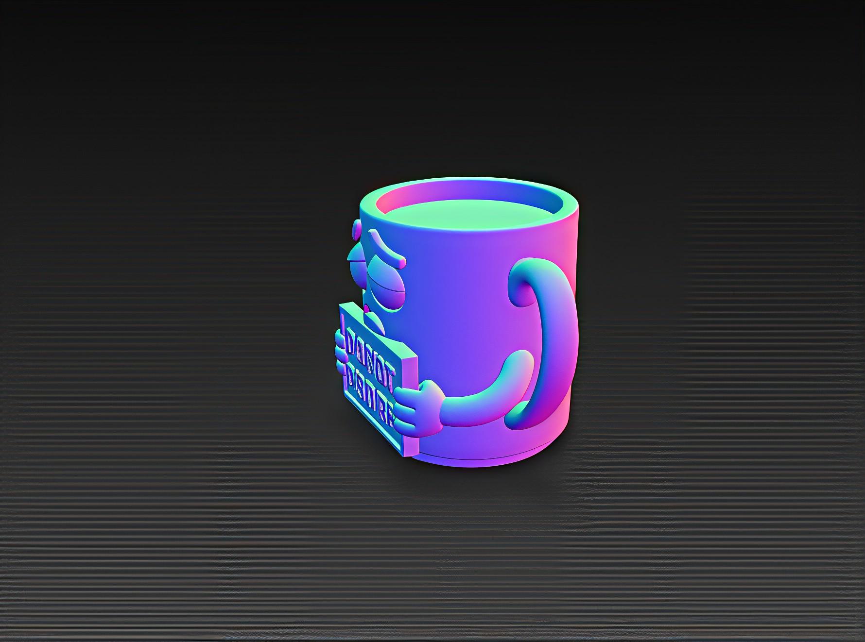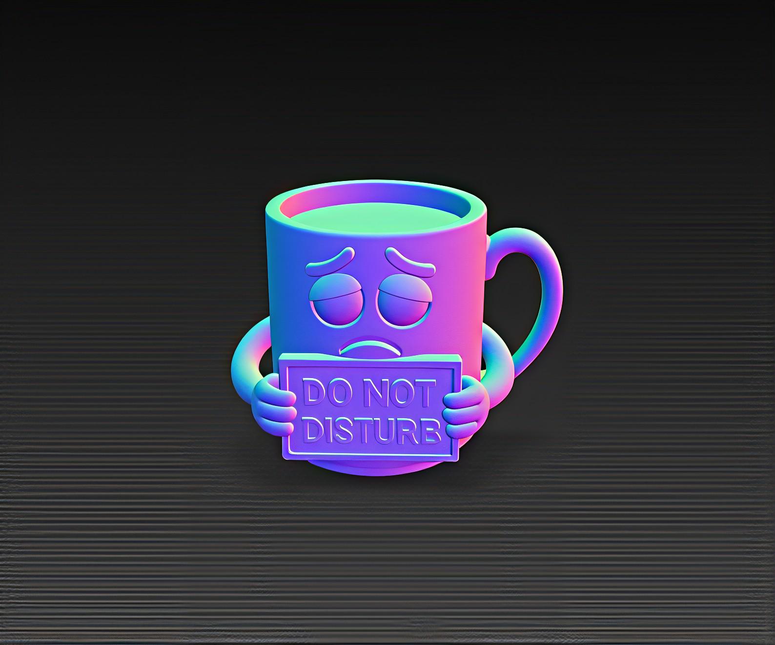 Cute and funny STL file of a sad cartoon coffee mug holding a “Do Not Disturb” sign. Perfect for 3D printing gifts, decor, or office fun. Digital download only.