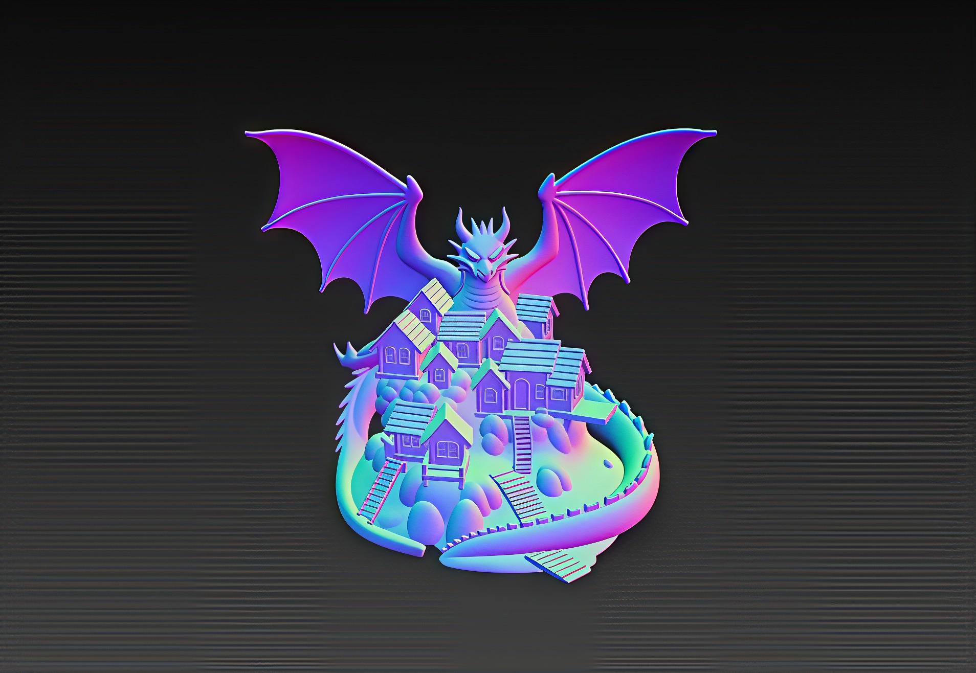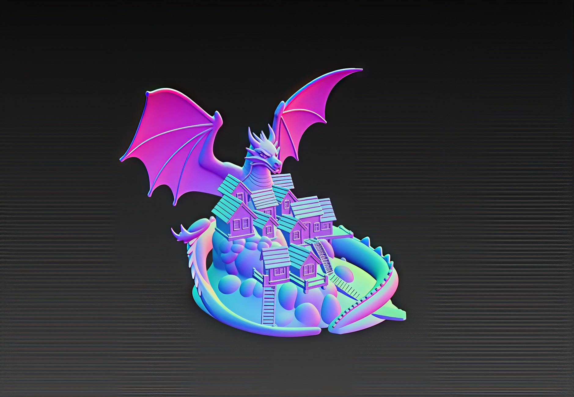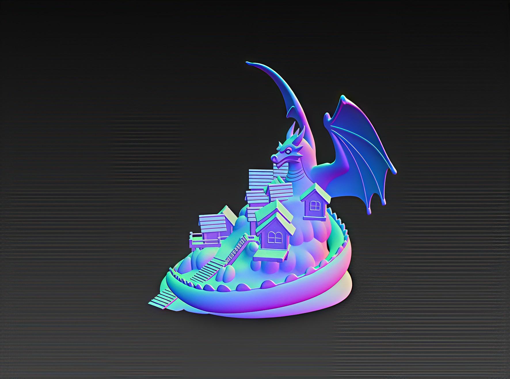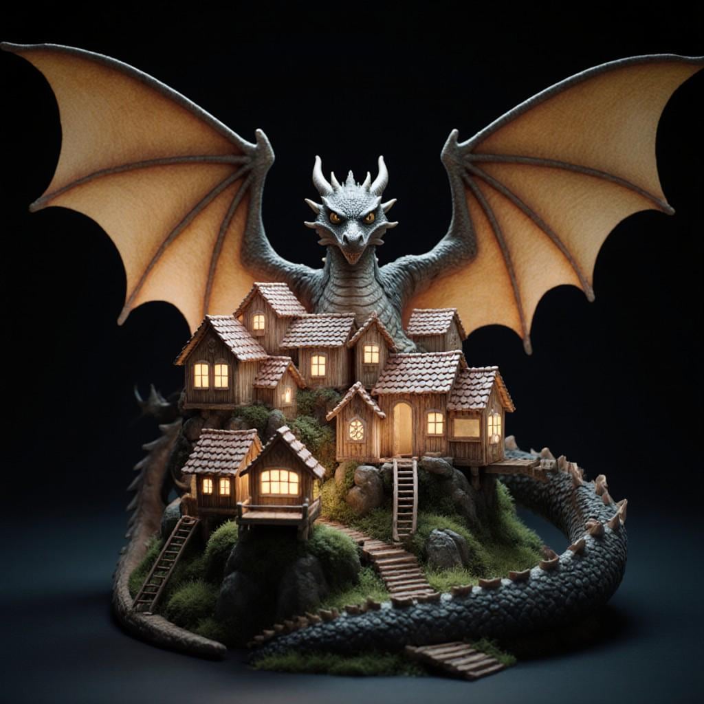 Epic STL file of a dark fantasy diorama featuring a dragon towering over a detailed village. Perfect for 3D printing decor, RPG terrain, or collectibles. Digital download only.