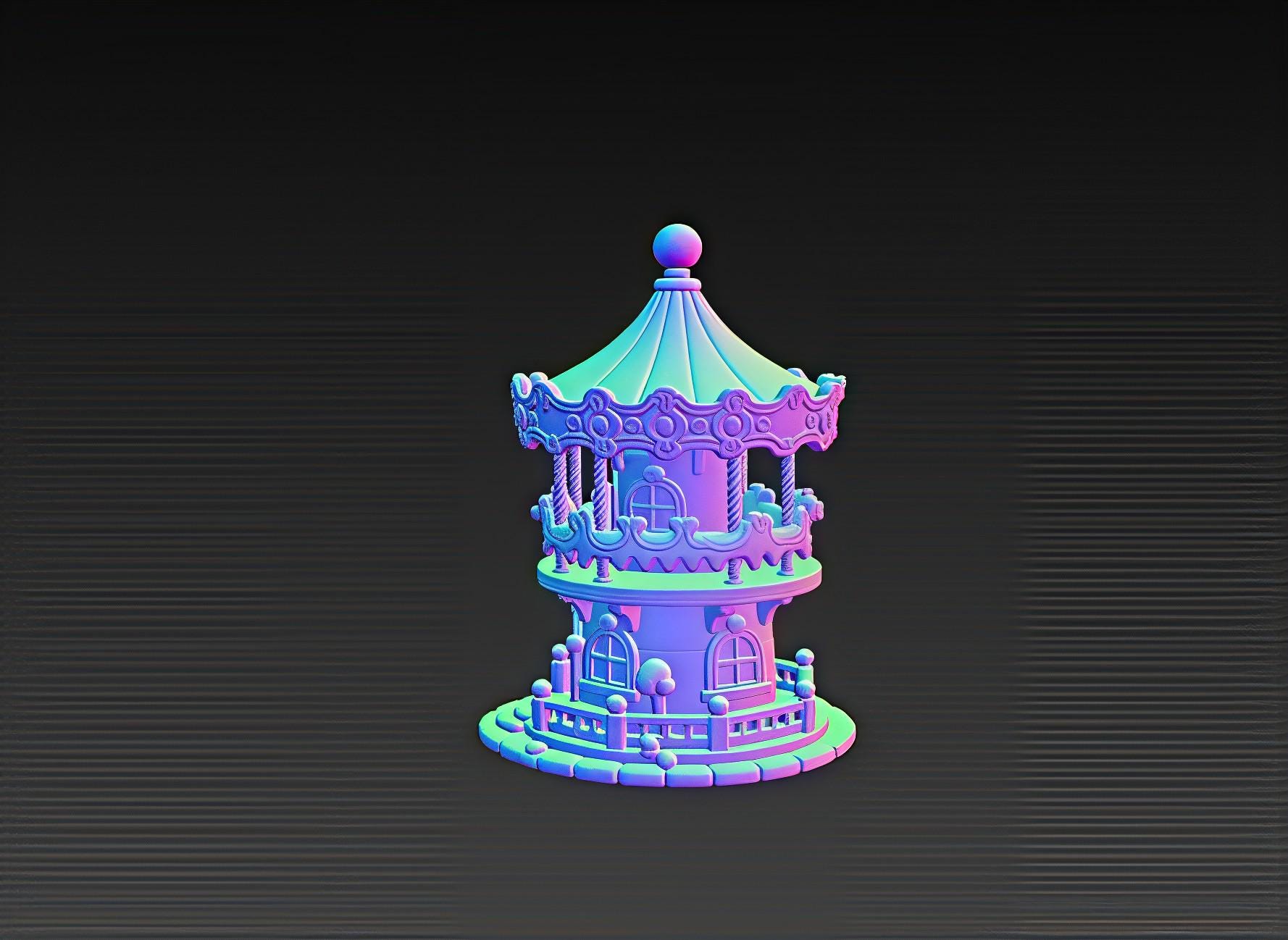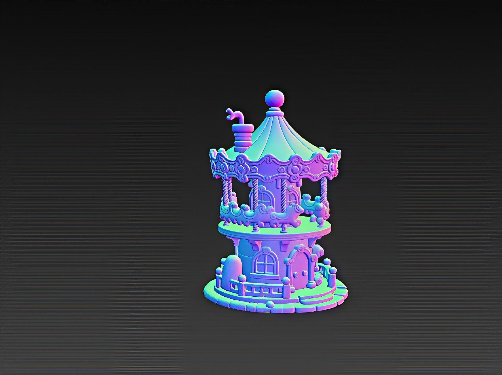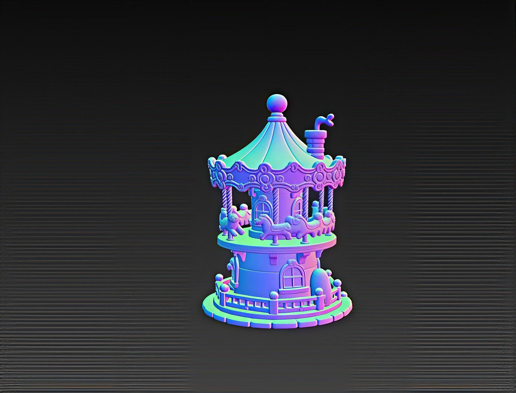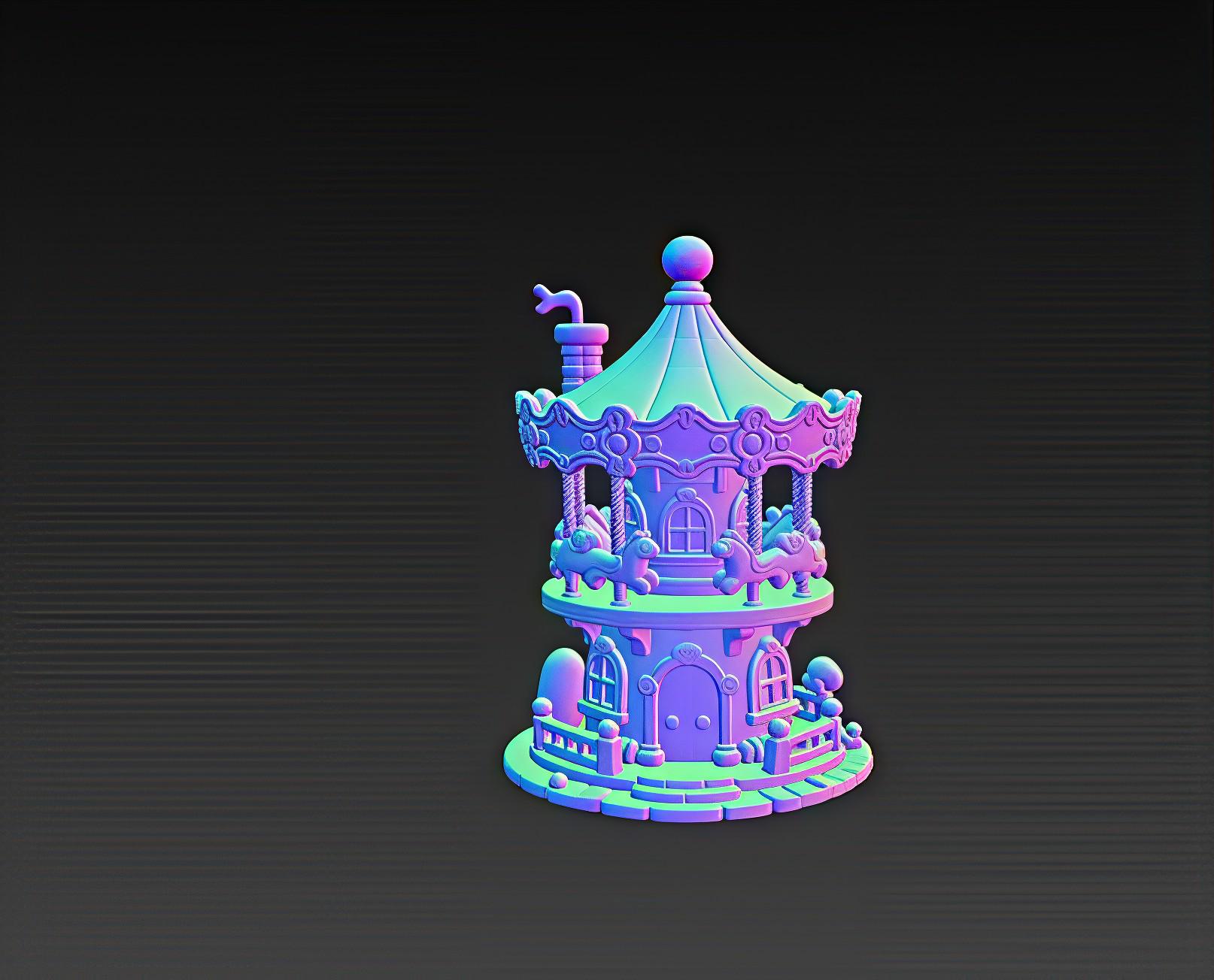 Whimsical STL file of a unicorn carousel-themed fantasy house. Perfect for 3D printing cute decor, fairy tale villages, or collectible gifts. Digital download only.