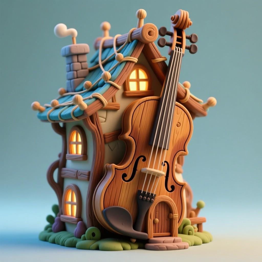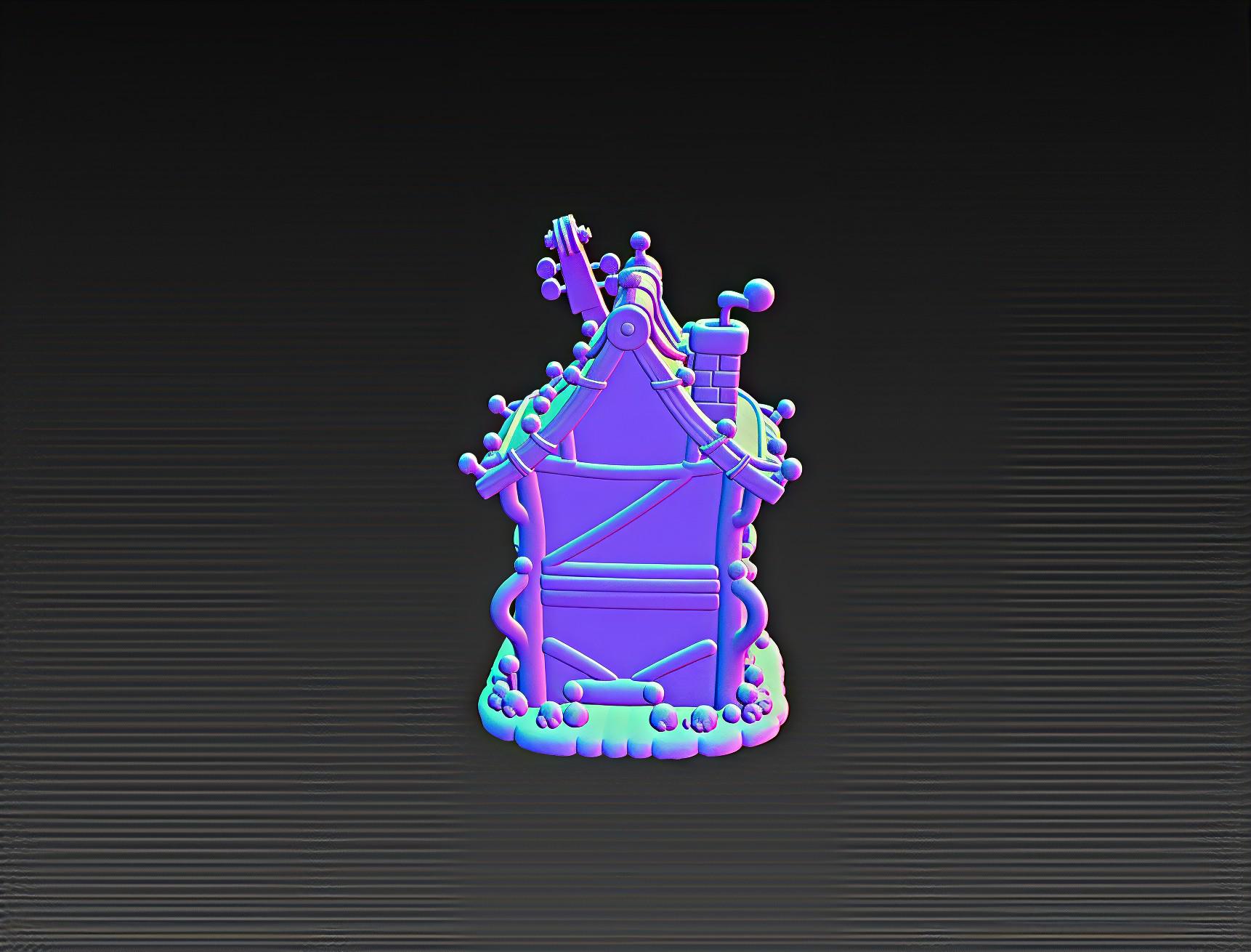 Unique STL file of a whimsical fantasy house shaped with a violin design. Perfect for 3D printing fairy tale villages, music-themed decor, or collectibles. Digital download only.