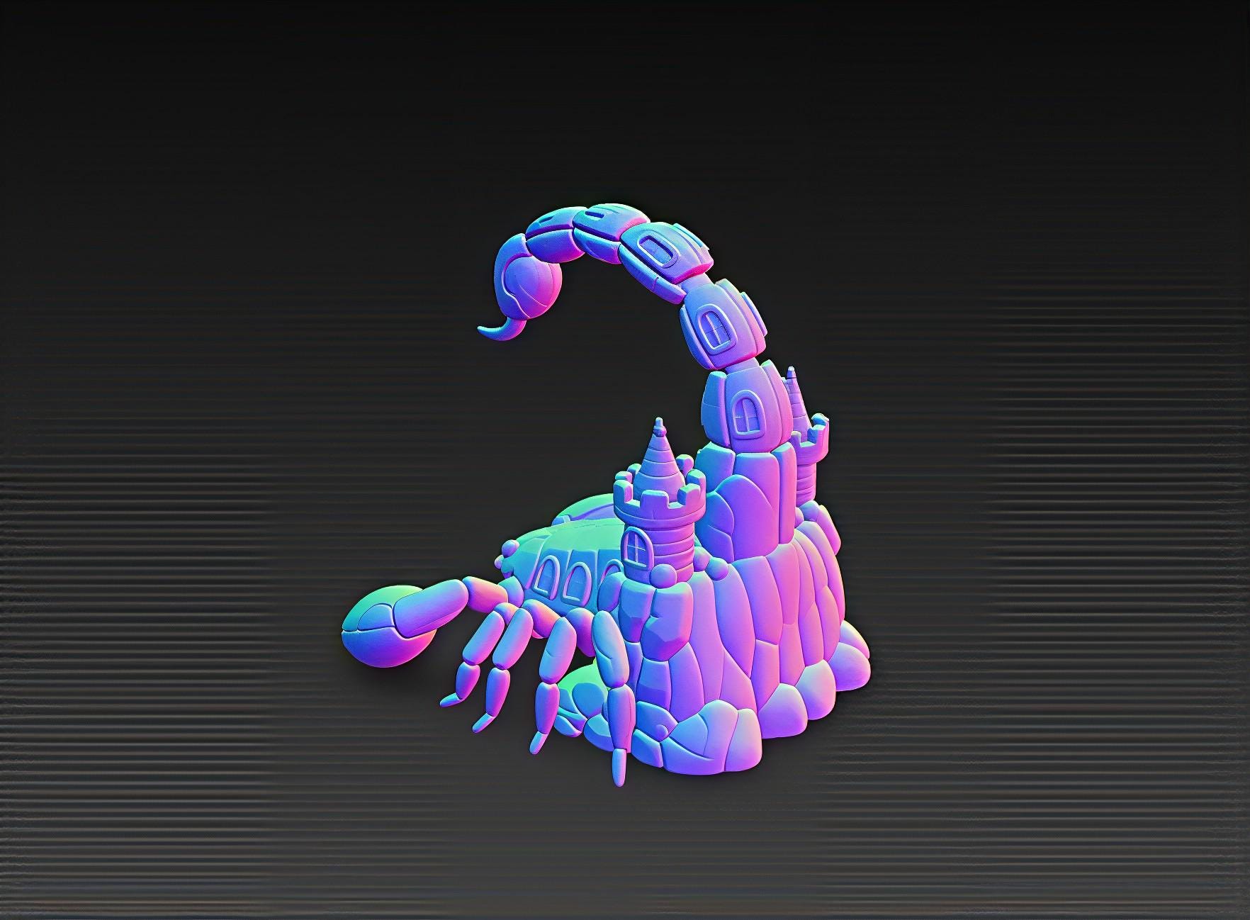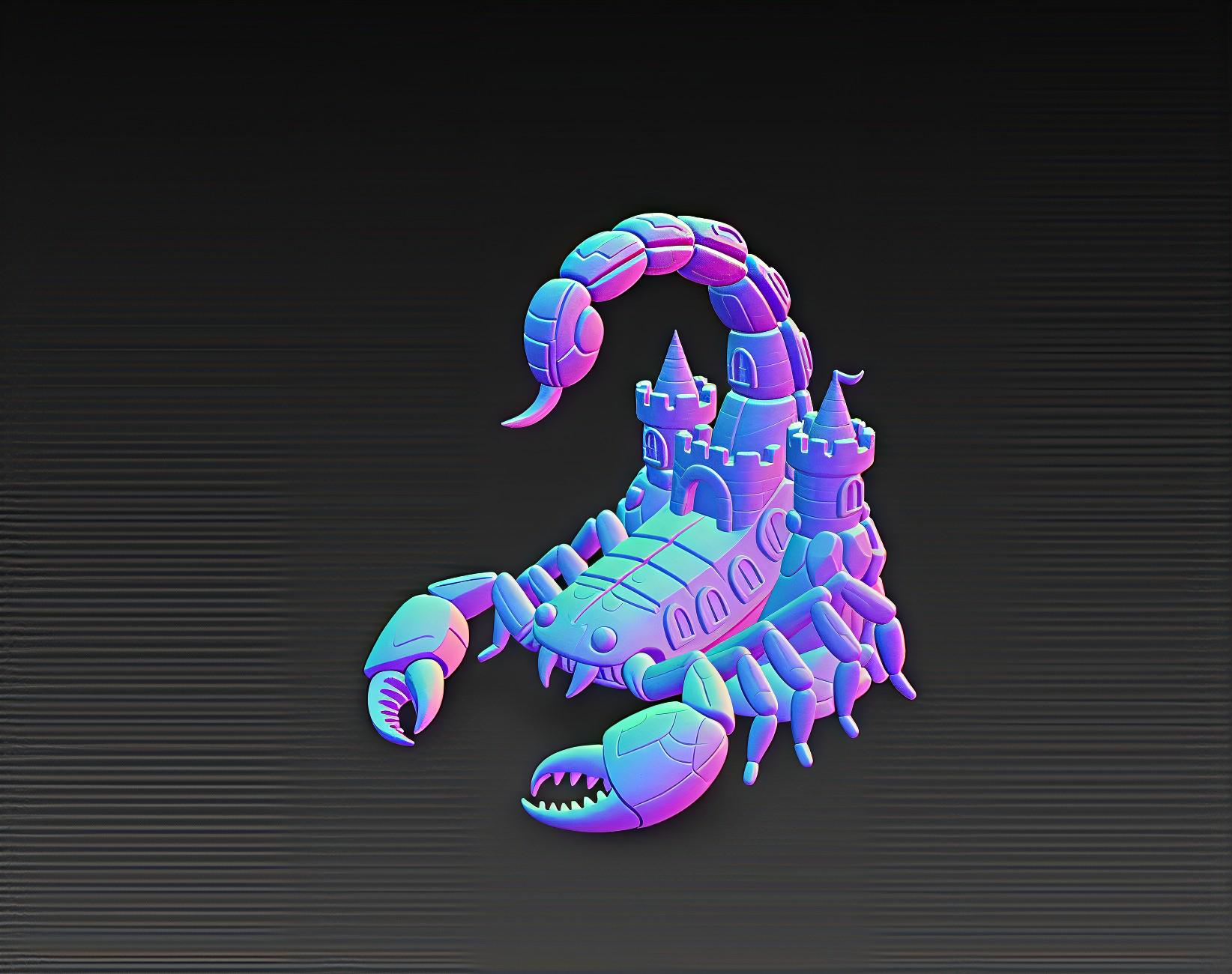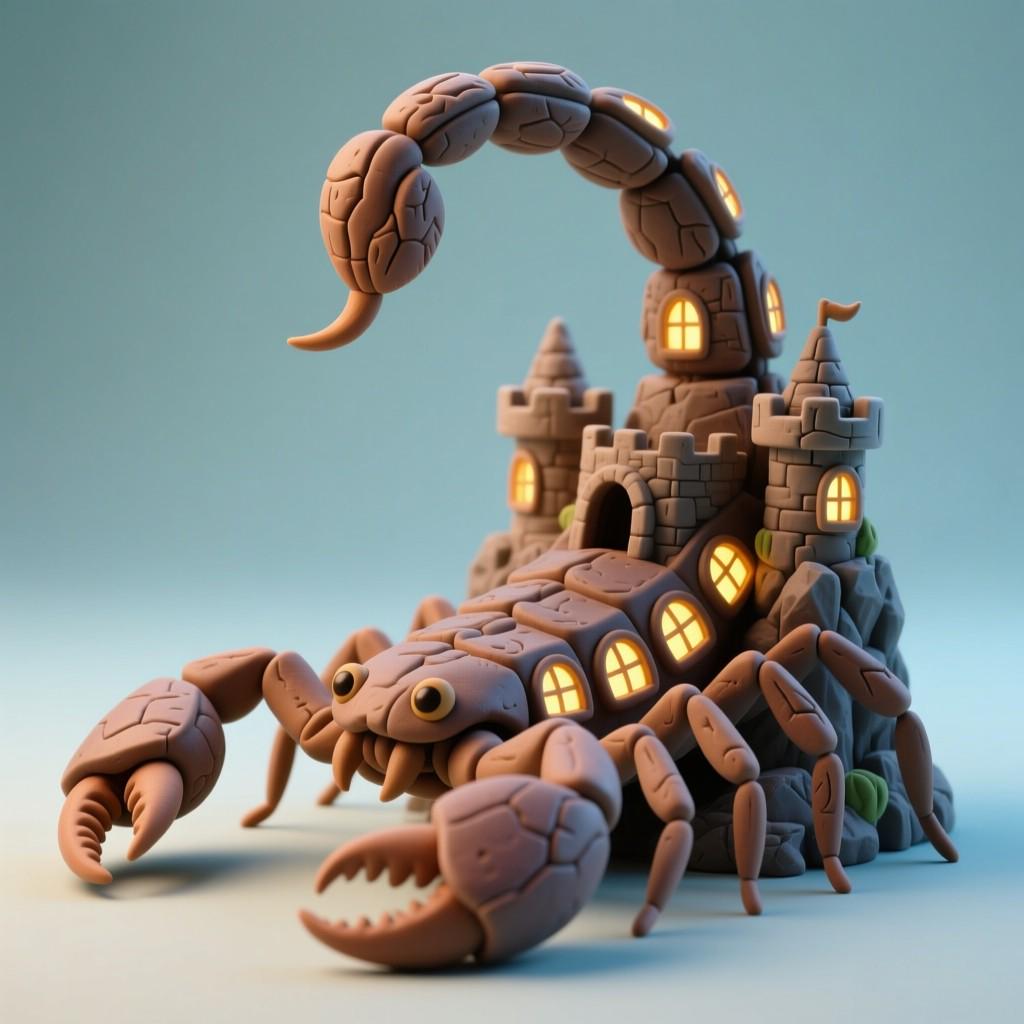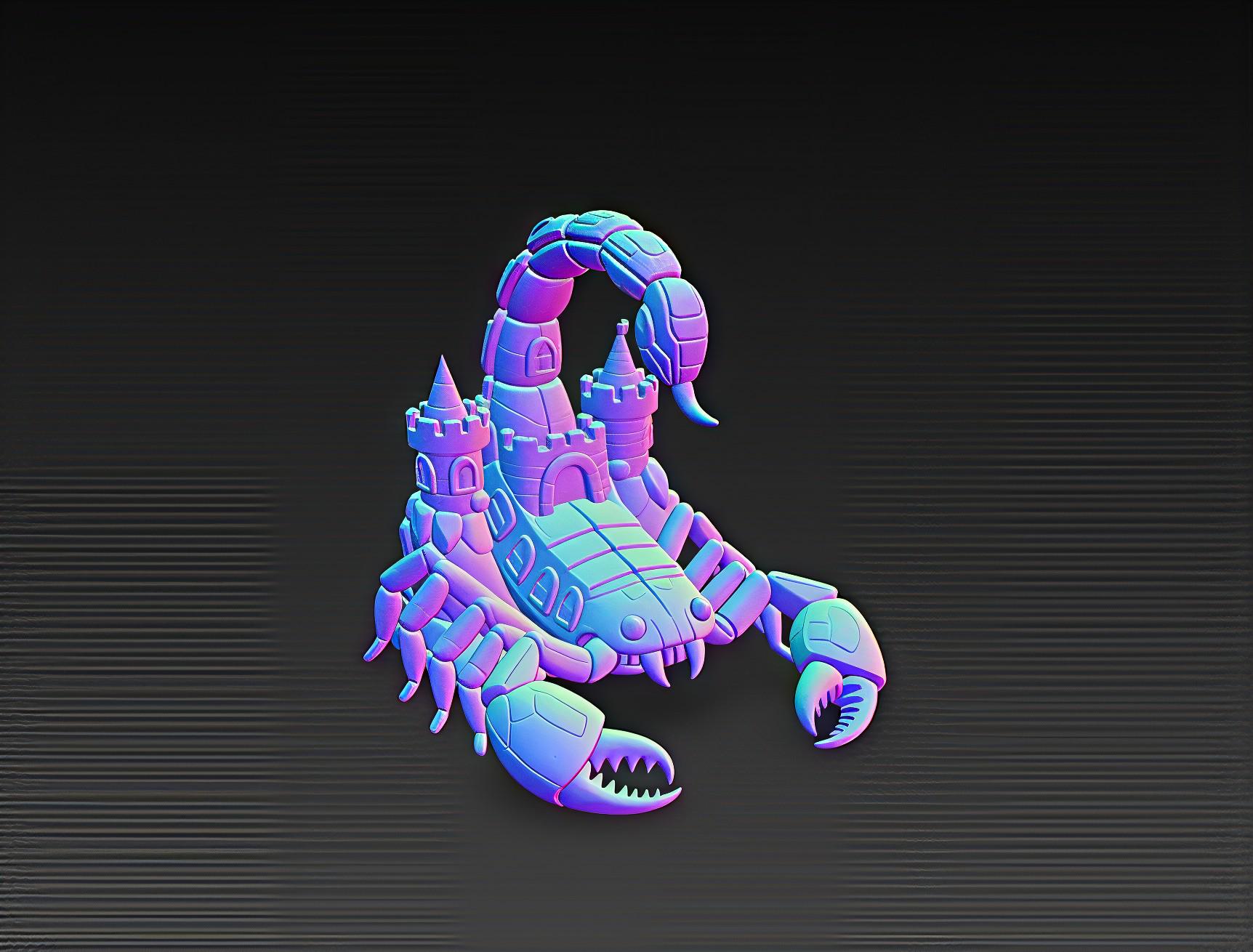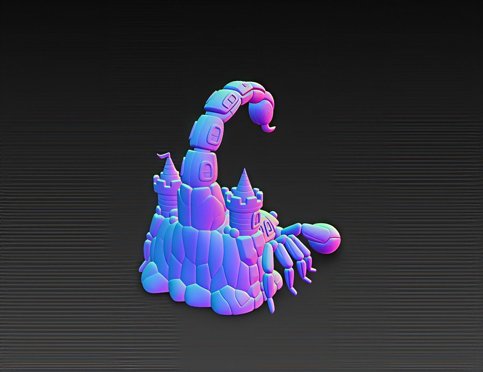 Unique STL file of a fantasy scorpion castle house design with glowing windows and stone towers. Perfect for 3D printing tabletop scenery, fantasy villages, or collectible home décor. Digital download only.