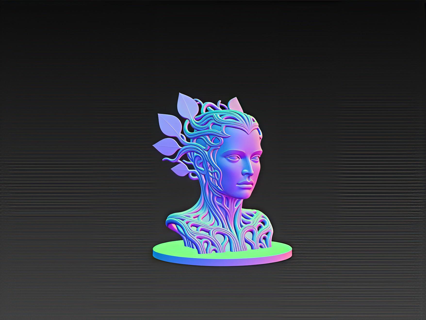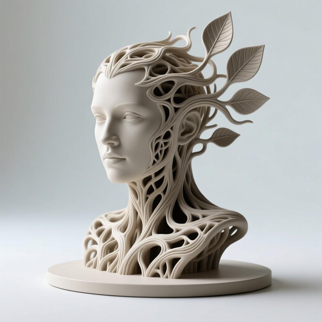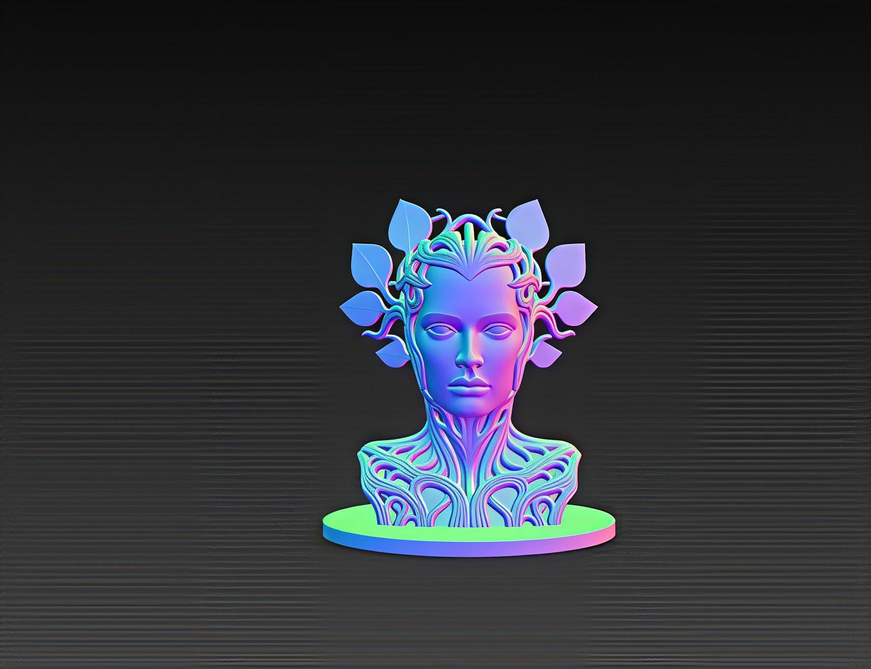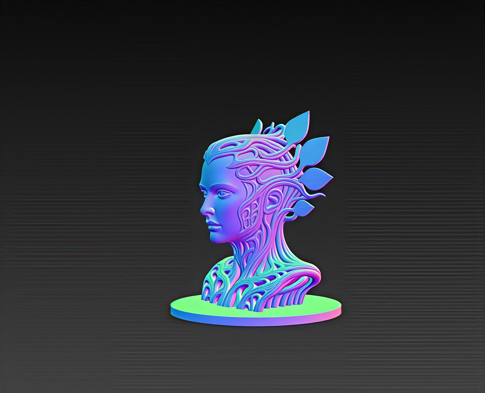 Elegant Tree Spirit bust STL with flowing organic patterns and leaf details. Perfect for art lovers, unique home décor, or fantasy collections. Easy to print, highly detailed, digital download only.