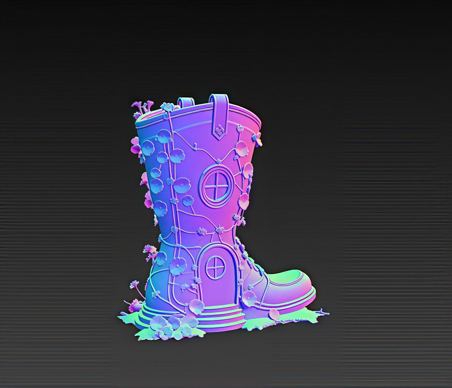 Unique fantasy boot-shaped house STL for 3D printing. Perfect for fairy gardens, tabletop dioramas, and magical home décor. Digital download only, no physical item.