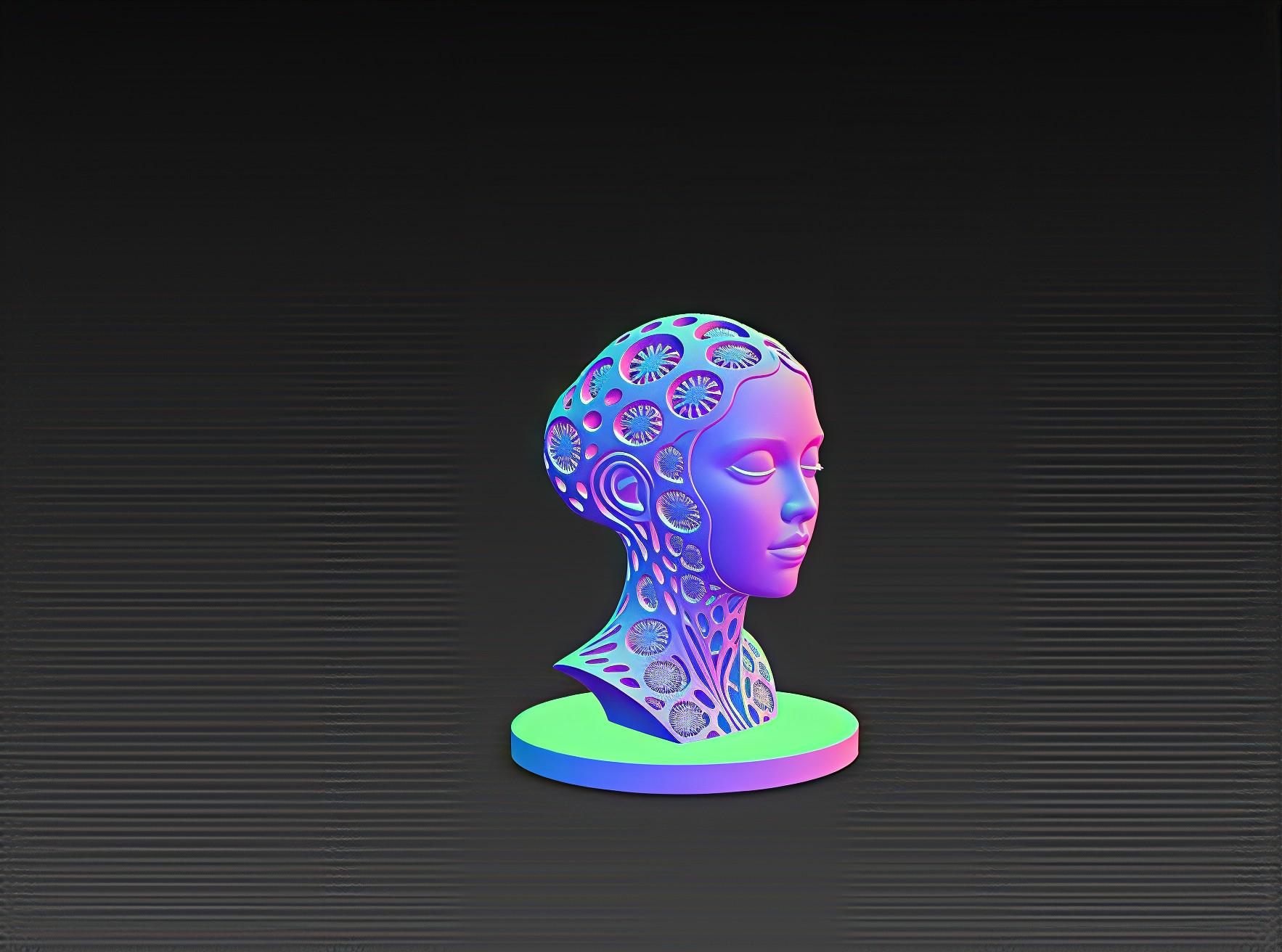 Elegant female bust STL with intricate organic patterns. Perfect for 3D printing as modern art décor, sculpture, or unique centerpiece. Digital download only, no physical item.