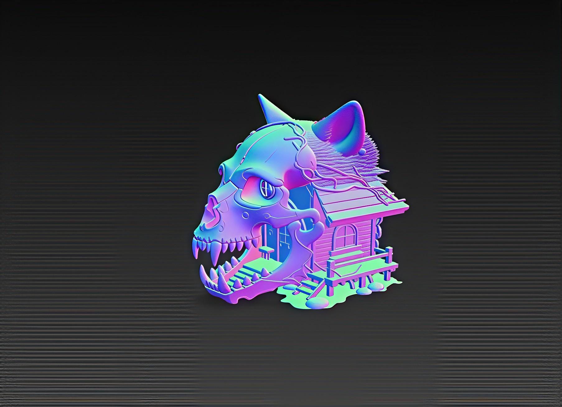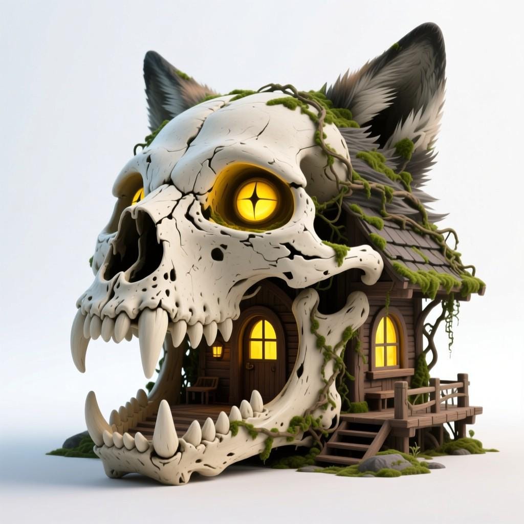 Unique wolf skull house STL model for 3D printing. Perfect for gothic décor, Halloween collections, or fantasy tabletop displays. Digital download only, no physical item.
