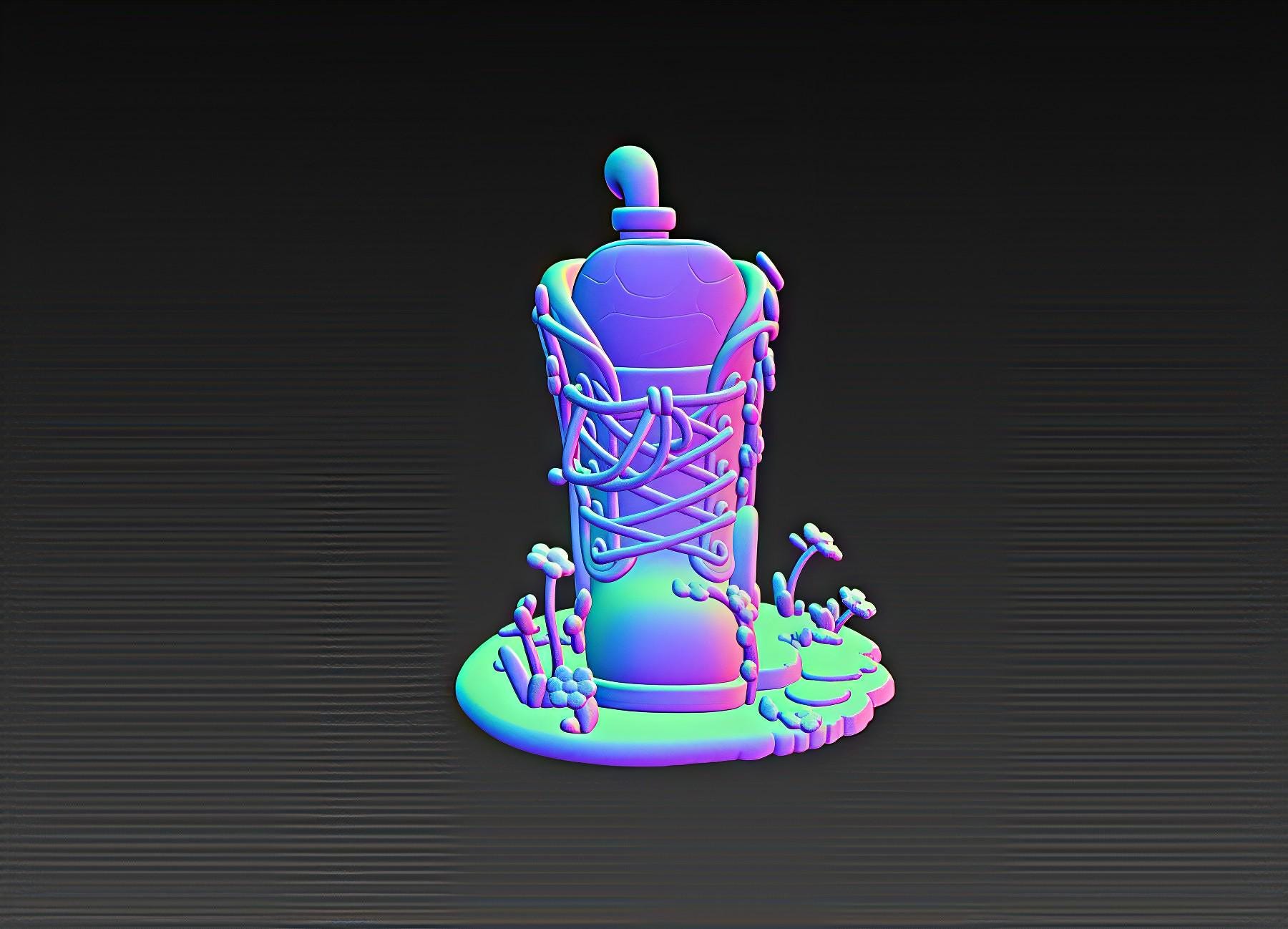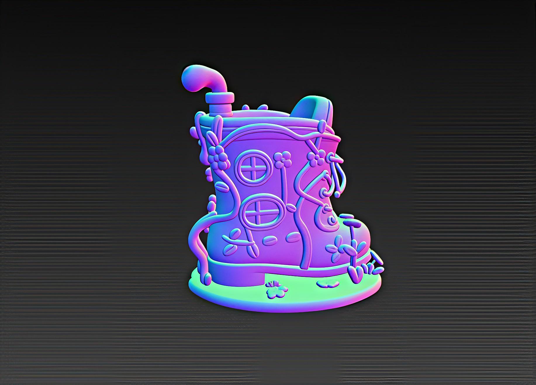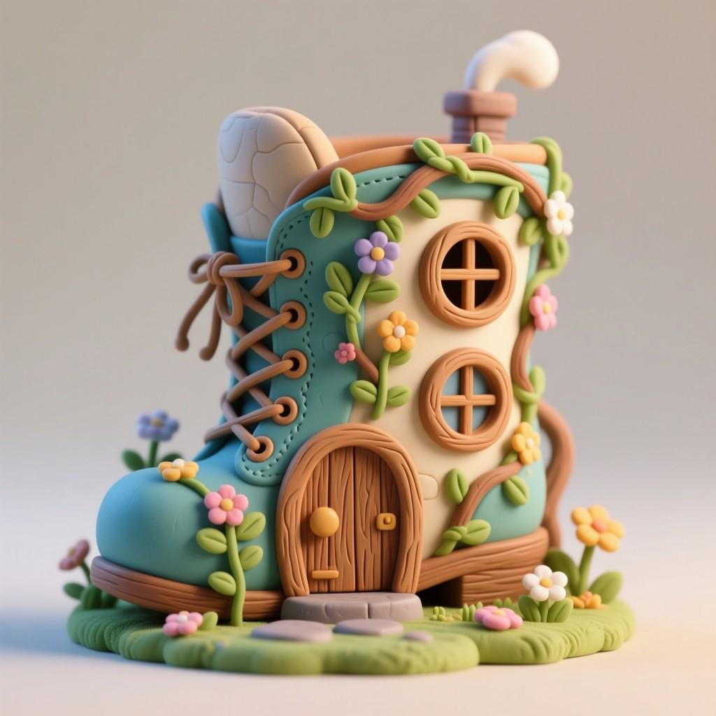 Adorable boot-shaped fairy tale house STL file for 3D printing. Perfect as a whimsical decoration, miniature, or fairy garden piece. Digital download only, no physical product.