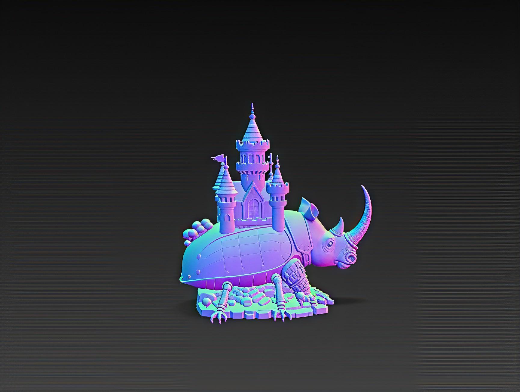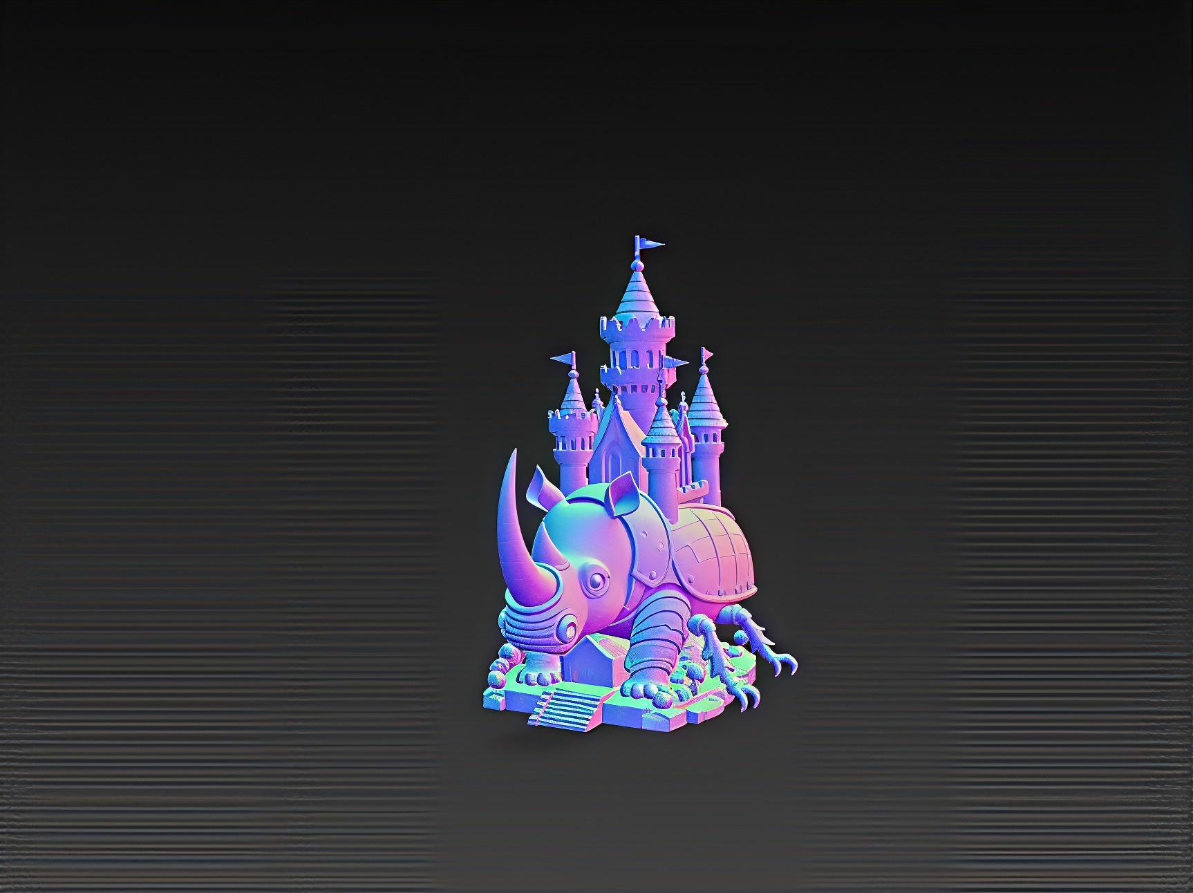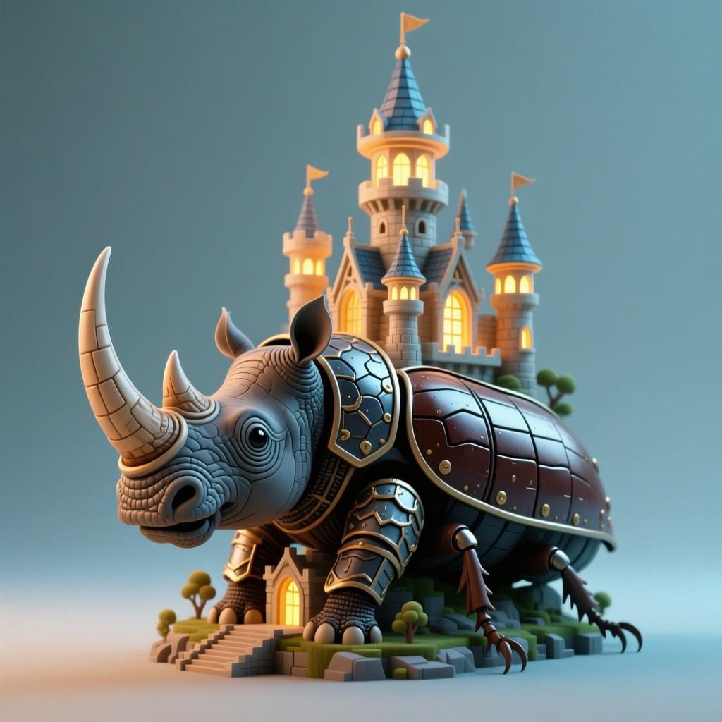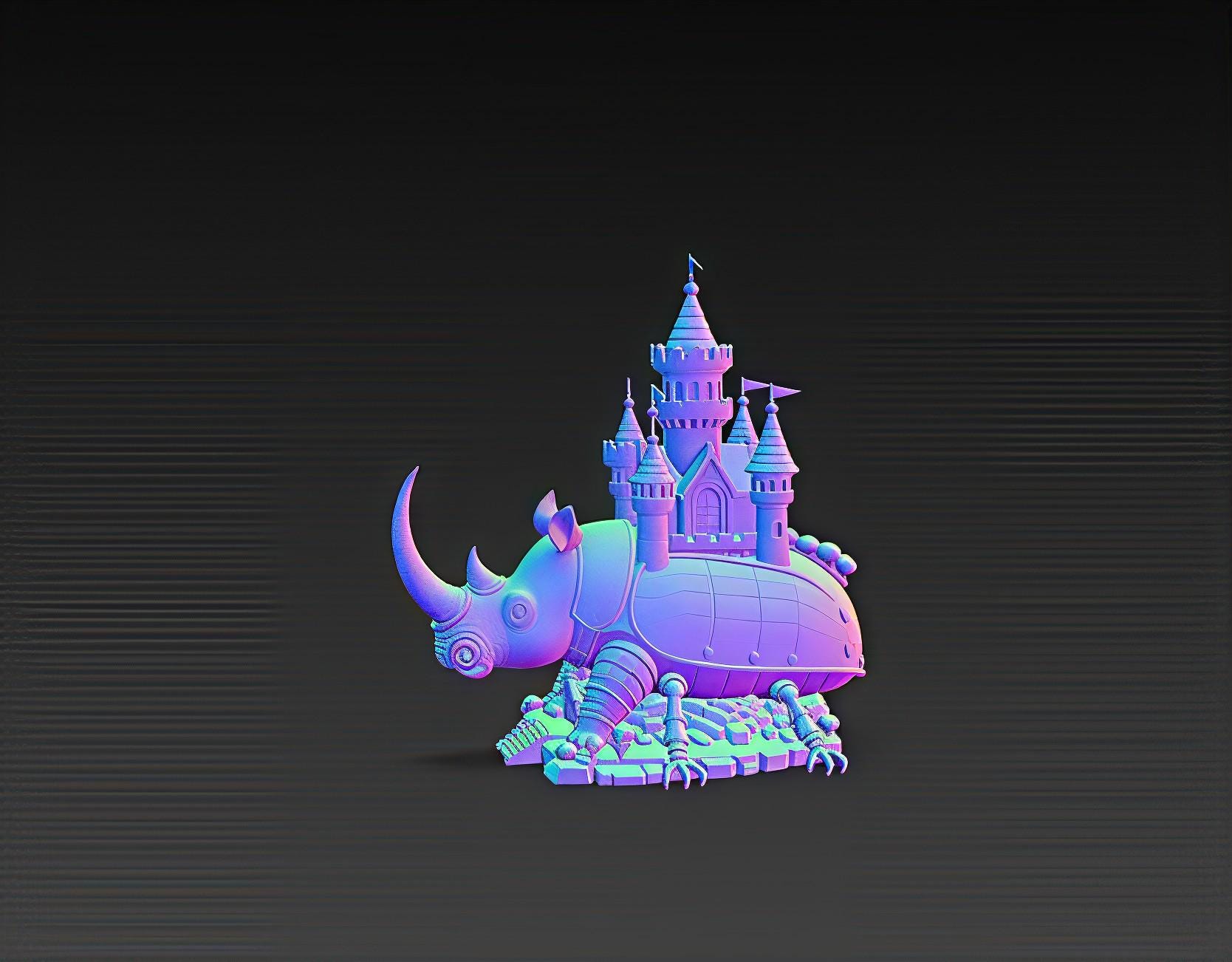 Step into a fantasy world with this Rhino Castle Fortress STL — a magnificent armored rhino carrying a glowing medieval castle on its back.